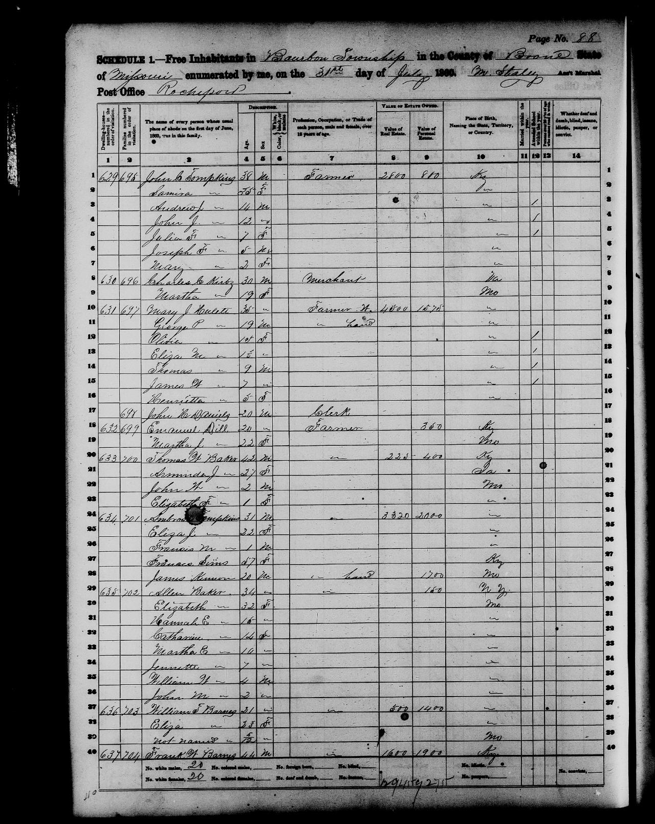 residenceBourbon Township, Boone, Missouri, USA ⇓ Living with him are a Frances Sims, aged 52 born in Kentucky, and a James Kennon, age 20 and born in Missouri. A few houses away, at the top of the page, is a John C Tompkins also born in Kentucky. Ambrose is a farmer. In 1850, Frances Sims was living in Audrain Co., MO, with her husband, whose initial is W. They have a son named Ambrose. They also have a son named William, which was probably what France's husband's name was. 2 Sources ⇓ |