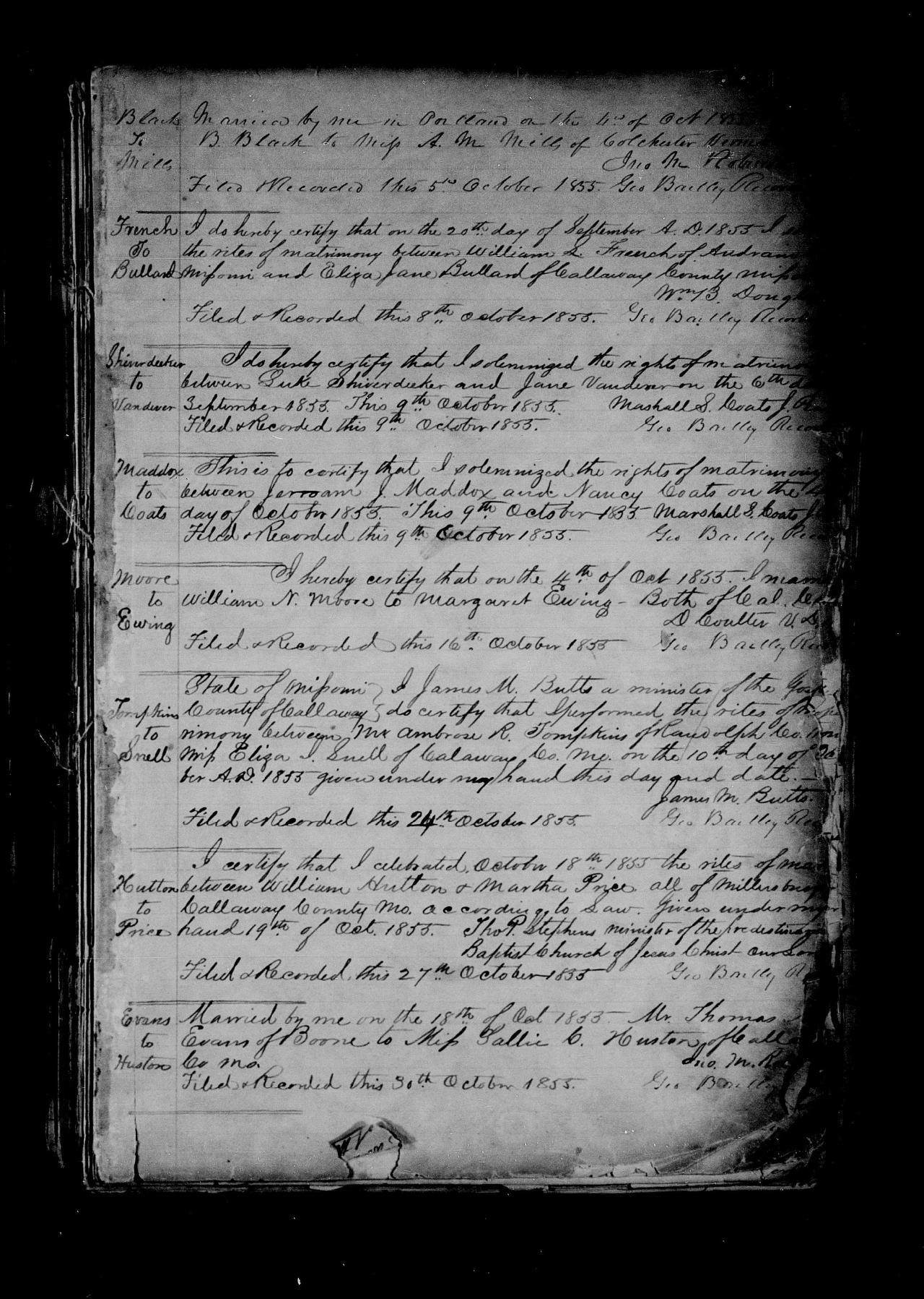 marriageCalloway County, Missouri, USA ⇓ He married Elizabeth I. Snell. 1 Source ⇓ |