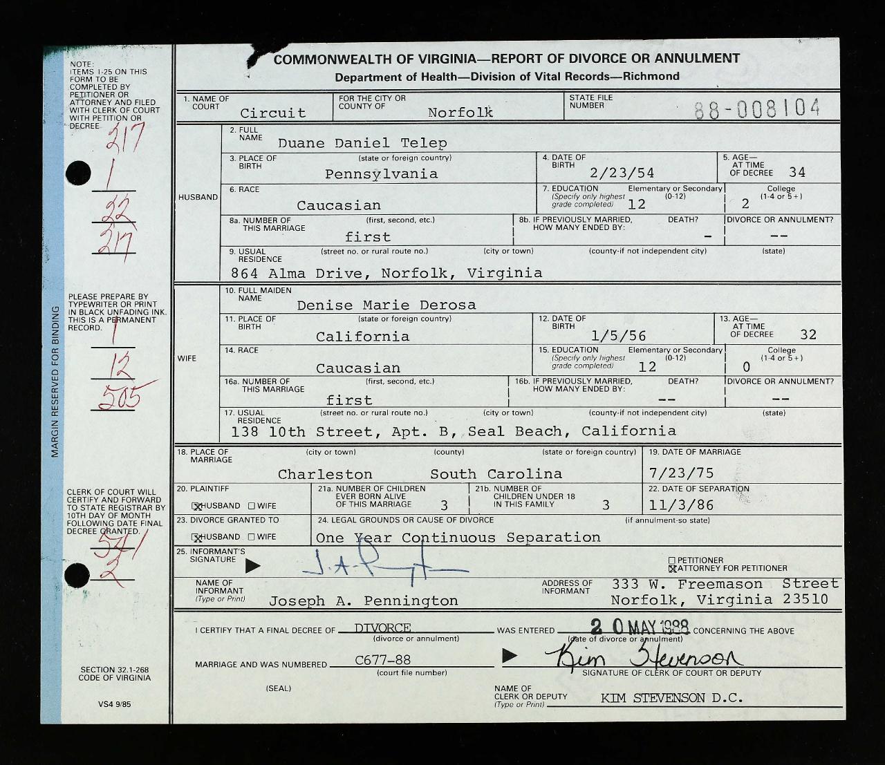 birth of childDenise Marie De Rosa California, USA ⇓ 2 Sources ⇓ |