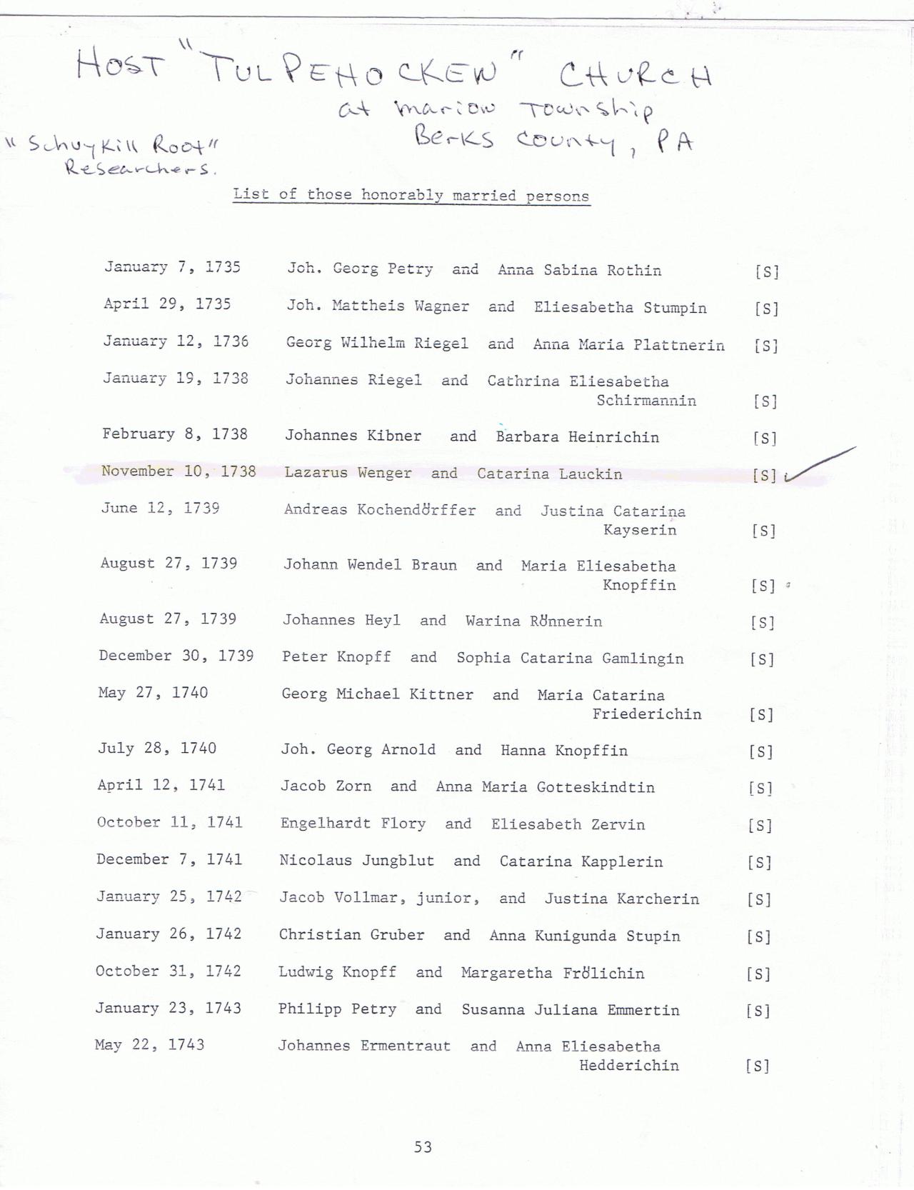 marriageBerks County, Pennsylvania, USA ⇓ Host Tulpenhocken Church 3 Sources ⇓ |