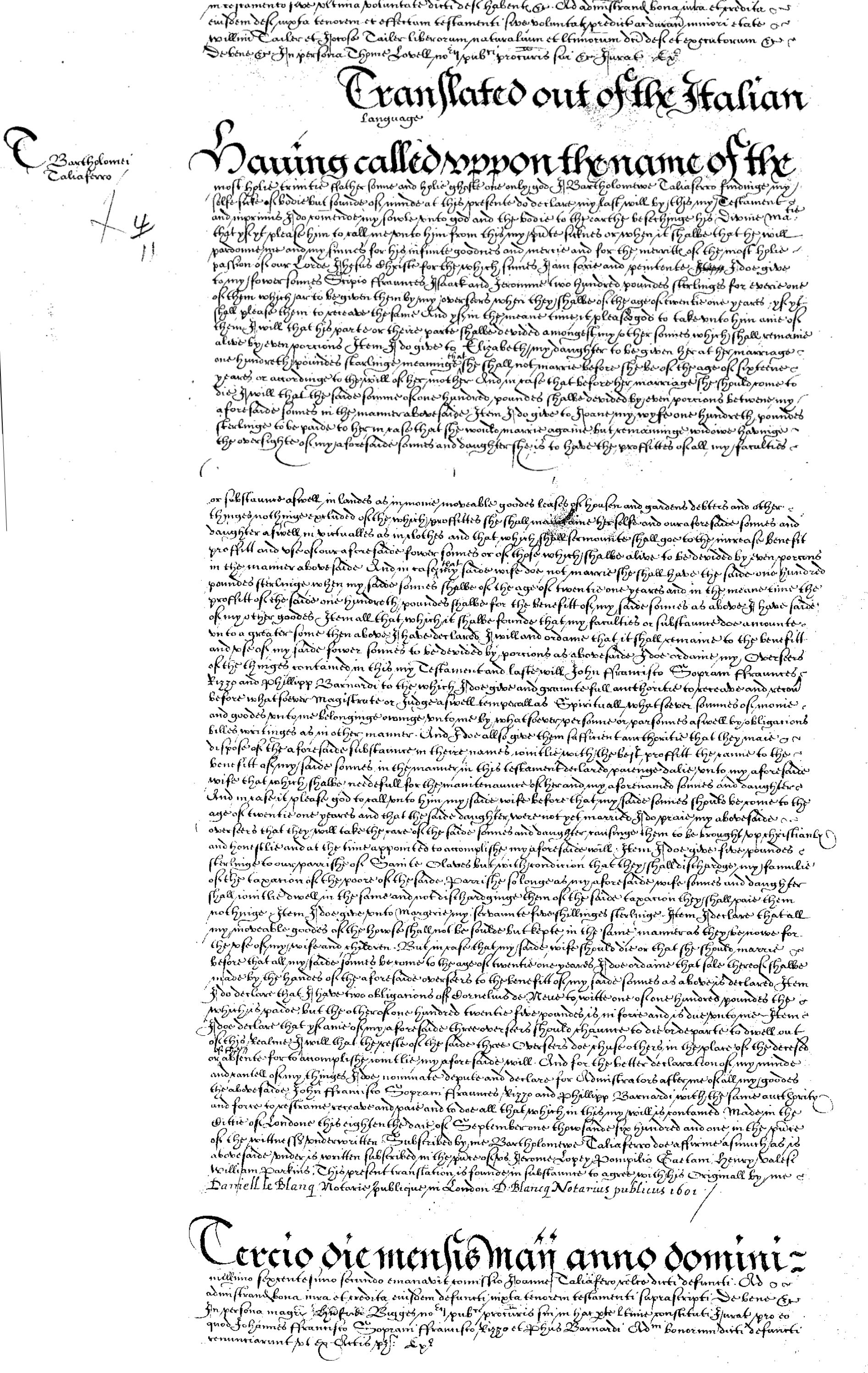 Will of Bartholomew Taliaferro