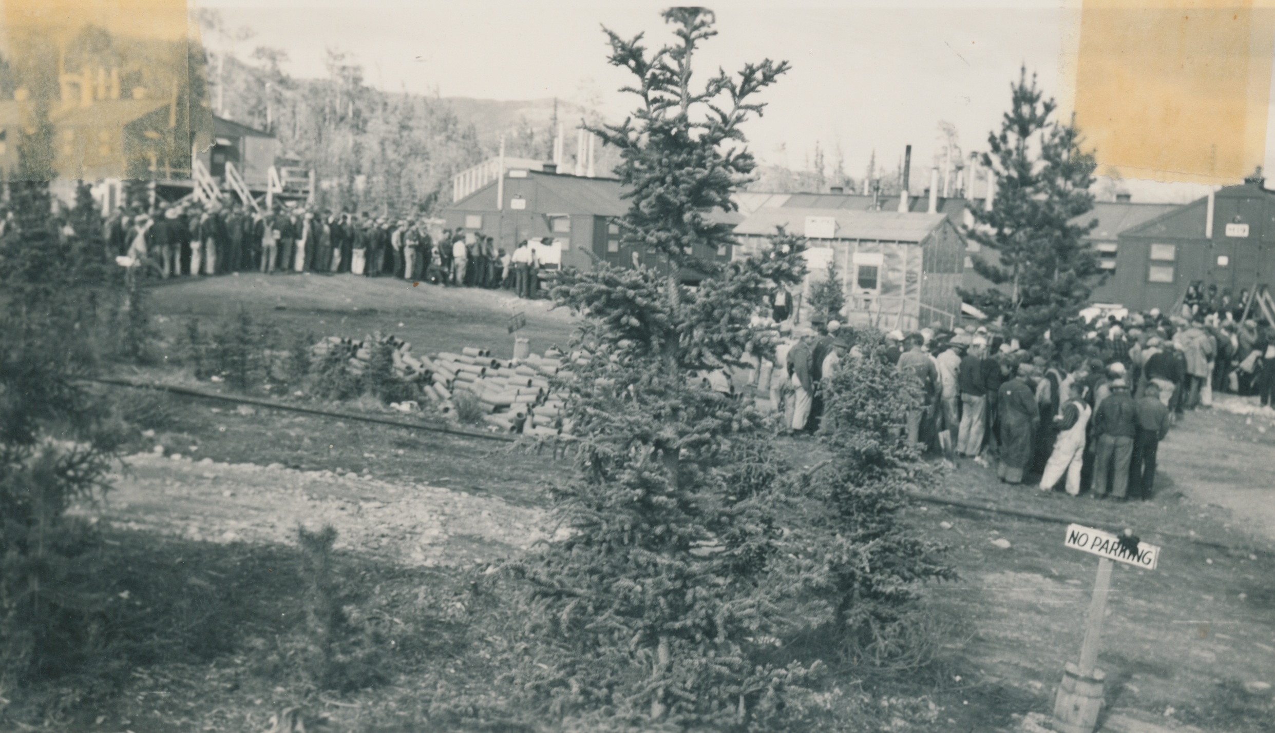"This is a picture of the mess hall where we eat. This was taken of a morning while the men were waiting for the doors to open"