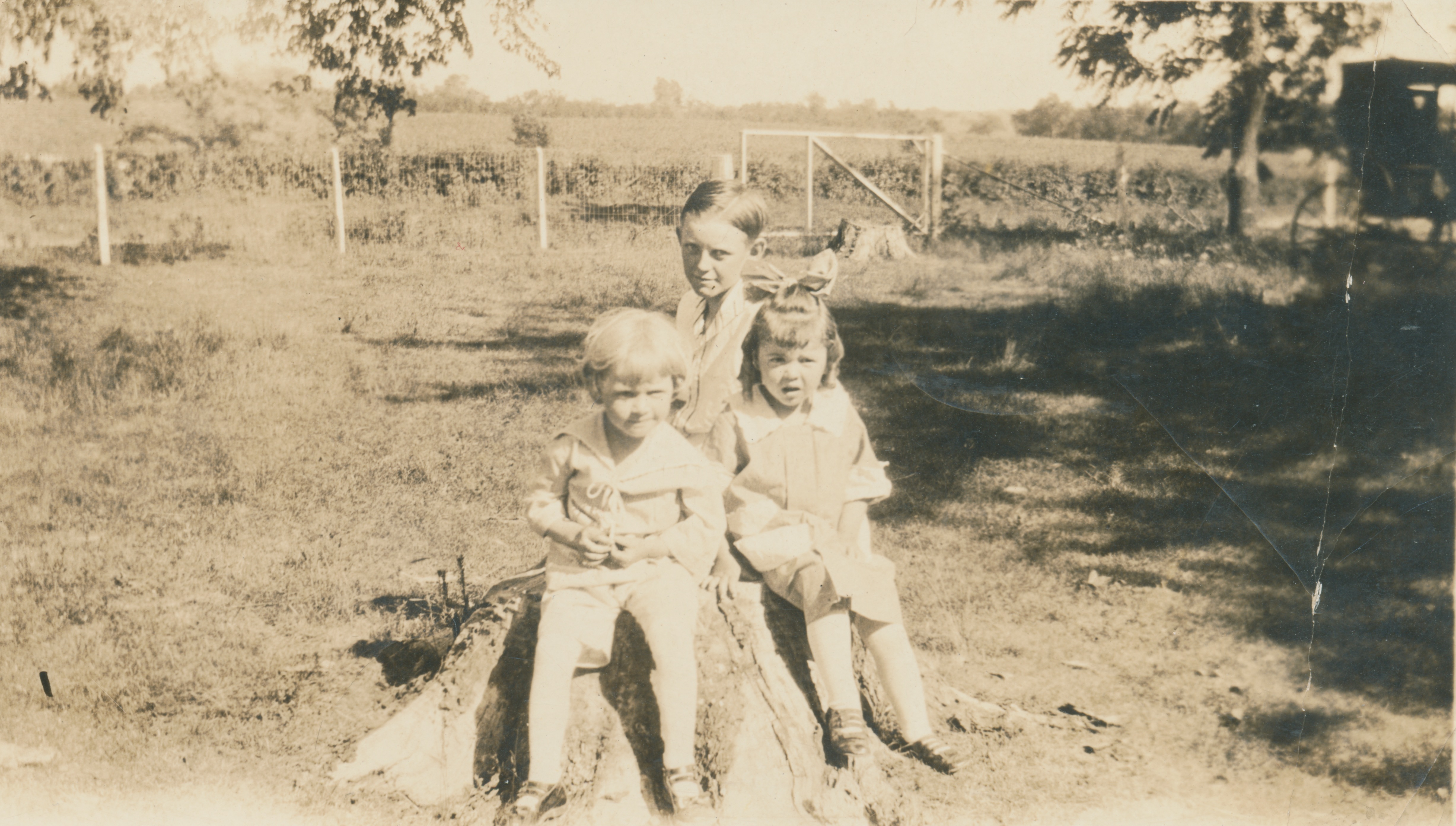 A young Chan Miller Johnson, William Johnson and Mauretta Miller on Chandler and Lula Bell Johnson's farm.