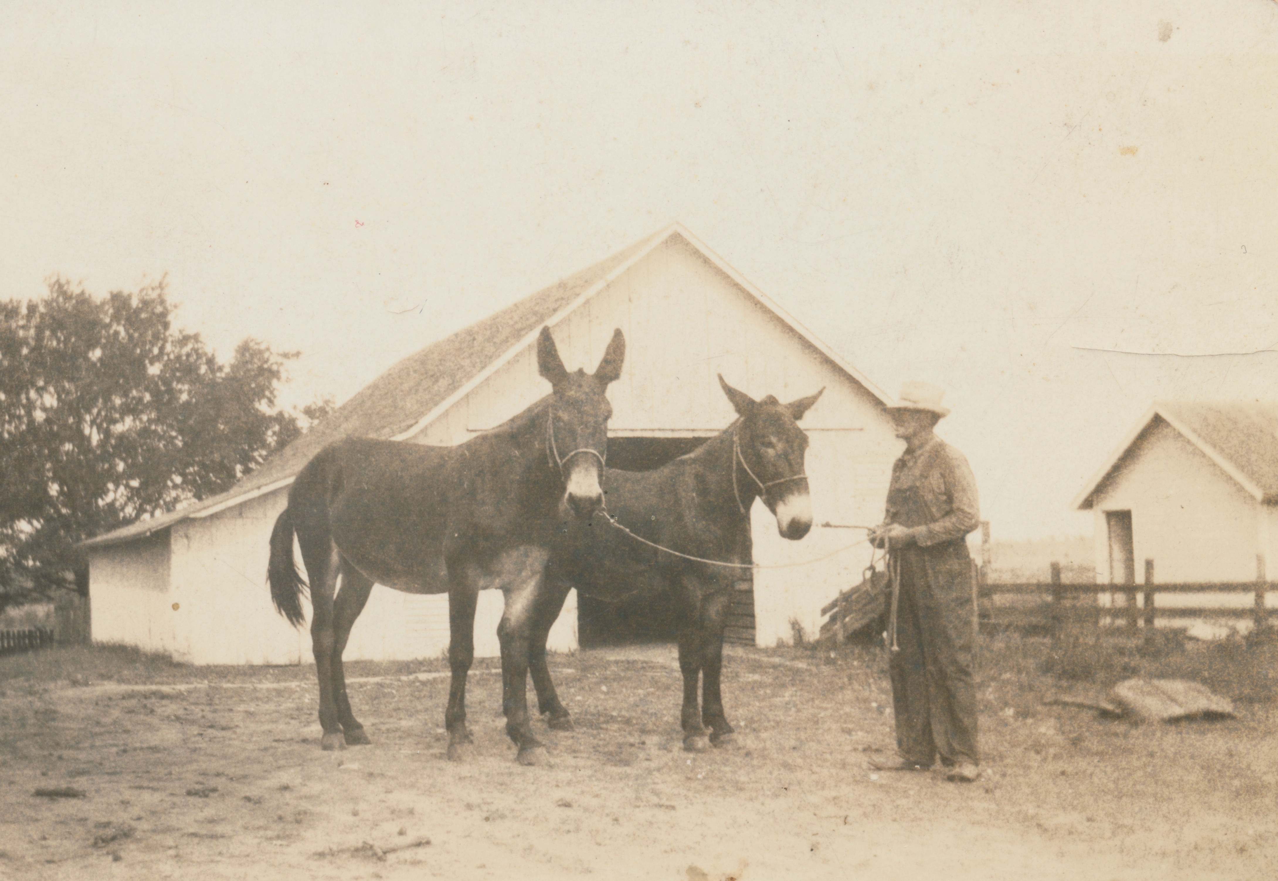 Chandler Allen on the farm with 2 mules