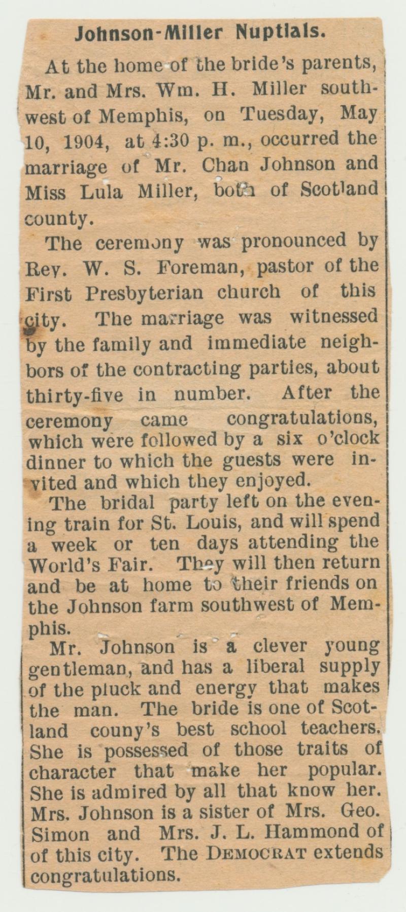 Johnson and Fisher Family