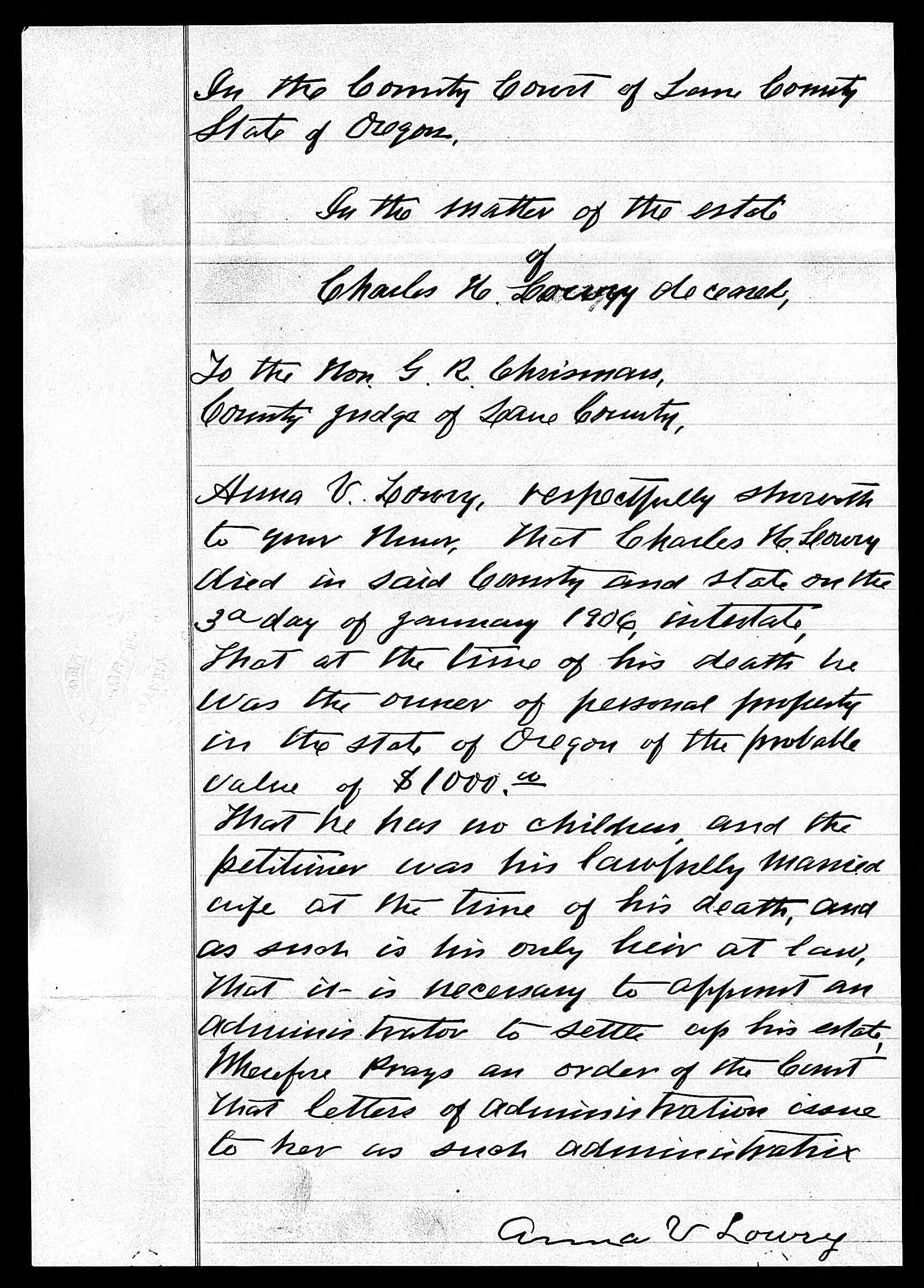 Will Documents for Charles H Lowry