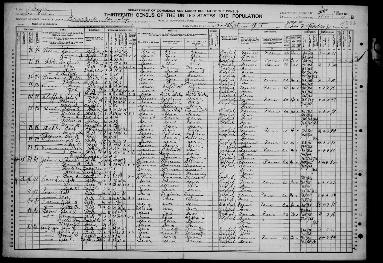 residenceBonaparte, Van Buren, Iowa, USA ⇓ Charles S Johnson is living with his wife Minnie B, children Marie and Helen, and his mother Mary E (Wilson) Johnson. 1 Source ⇓ |