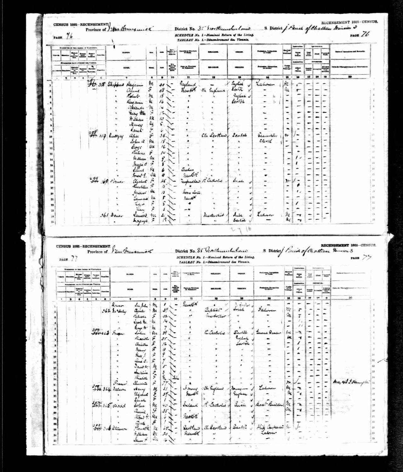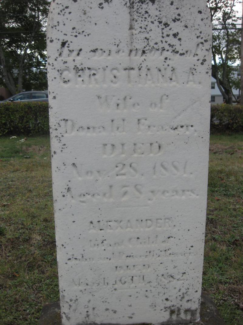 residenceChatham, Northumberland County, New Brunswick, Canada ⇓ She is living with her son John's family. He has seven children, his oldest daughter named Christina. 1 Source ⇓ |