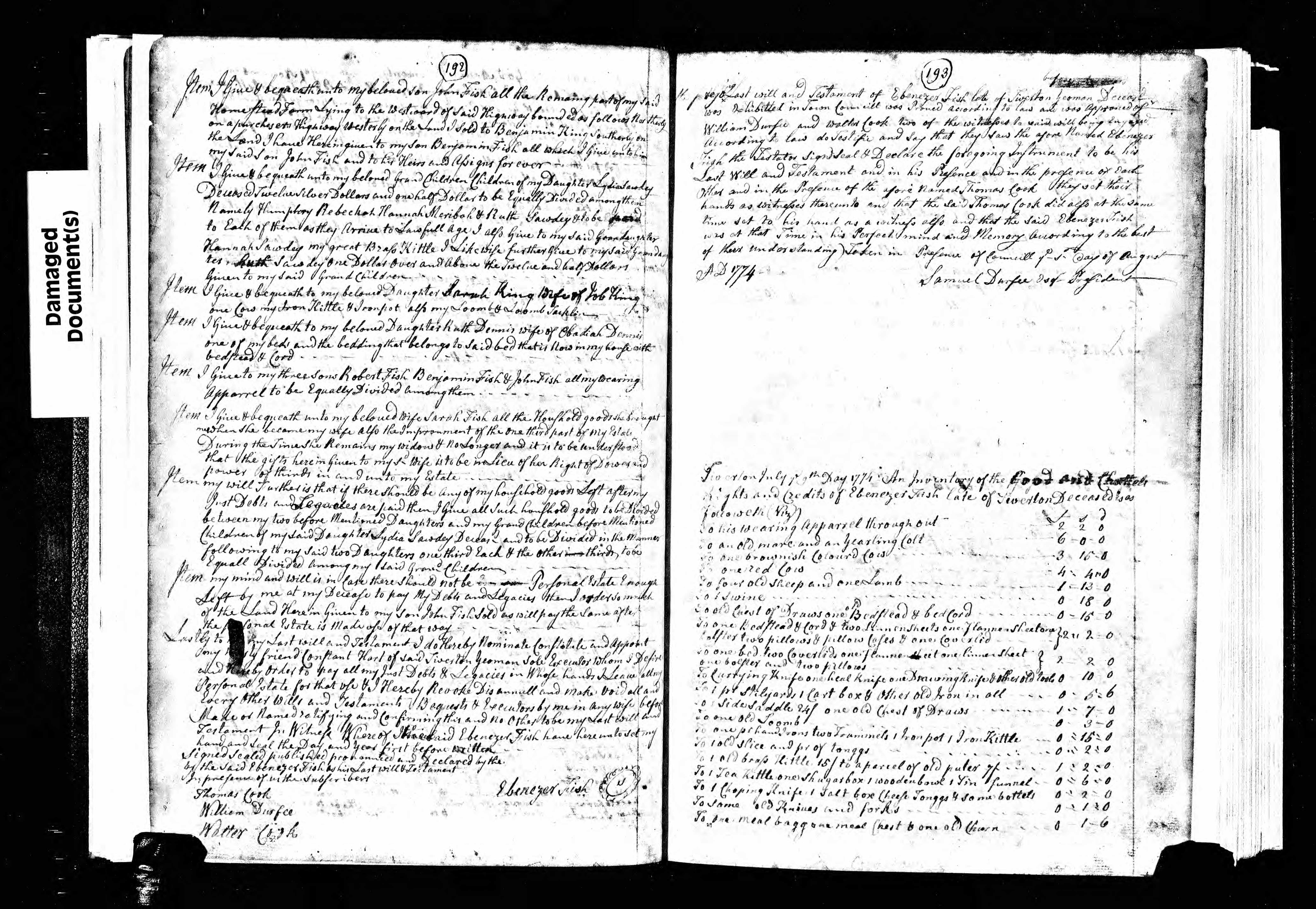 Ebenezer's Handwritten Will from 1773