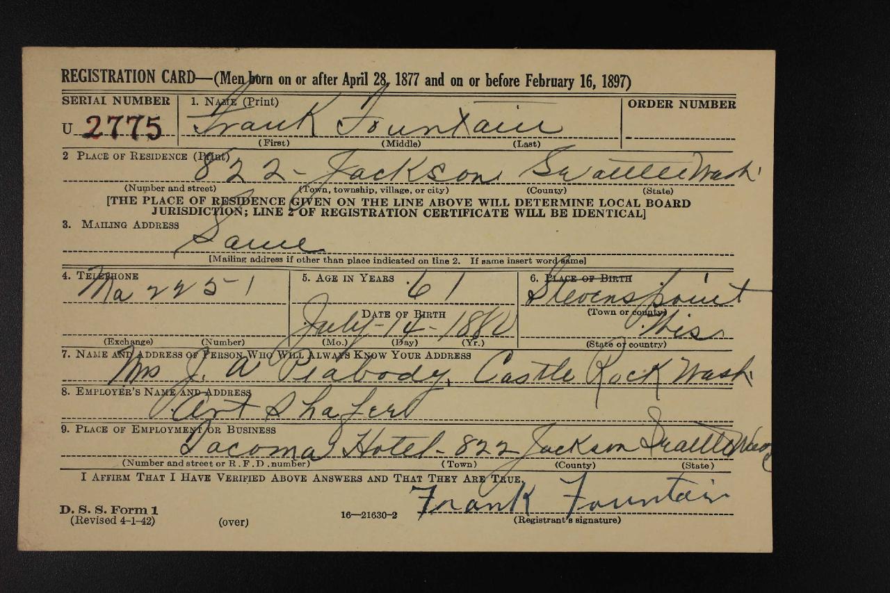 militarySeattle, King, Washington, USA ⇓ Employed at the Tacoma Hotel in Seattle 1 Source ⇓ |
