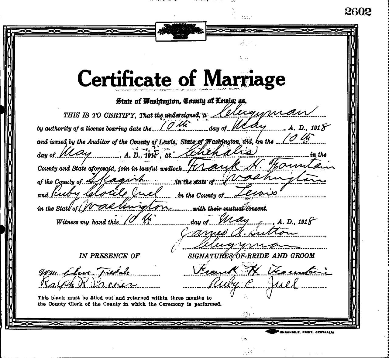 marriageRuby Cocile Juel Chehalis, Lewis County, Washington, USA ⇓ 1 Source ⇓ |