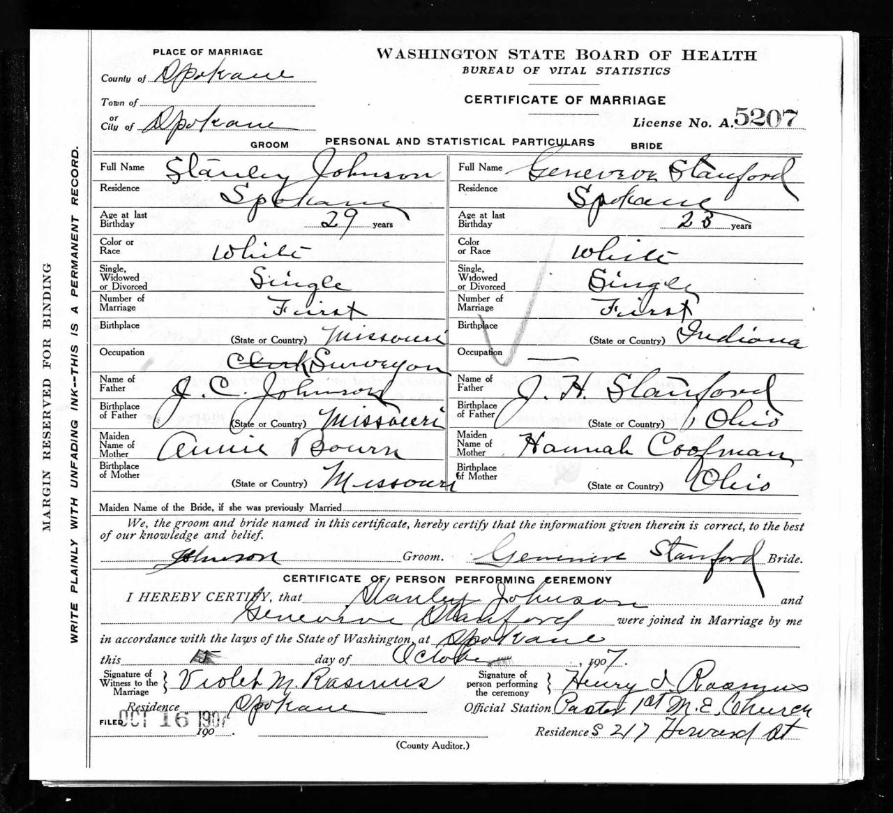 marriageWilliam Stanley Johnson Spokane, Washington, USA ⇓ 1 Source ⇓ |