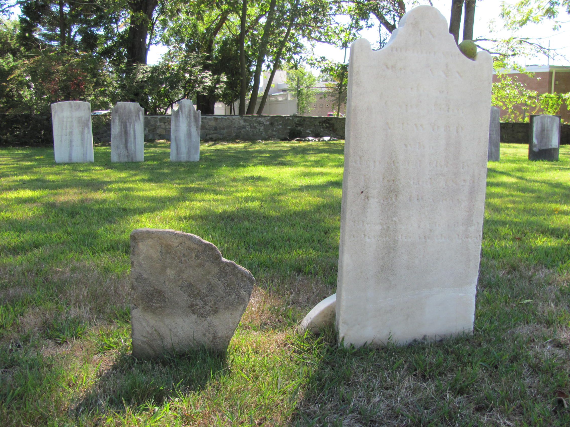From "Ye OLD BURYING GROUND OF FAIRFIELD, CONN." by Mrs. Kate Perry: A fac-simile of his tombstone is given on page 200 of this book. "..is the oldest stone in the whole ground; from the circumstance of the date, initital,s and contemporary history, was erected to Samuel Morehouse, Lieutenant and County Marshall, from 1675 to 1687. He was the ancestor of the Morehouses in Fairfield and Litchfield Counties, and other families of the name scattered westward."