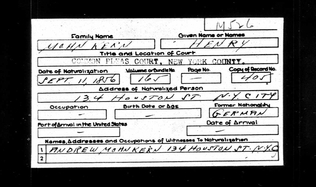 Henry Mohnkern - U.S. Naturalization Record
