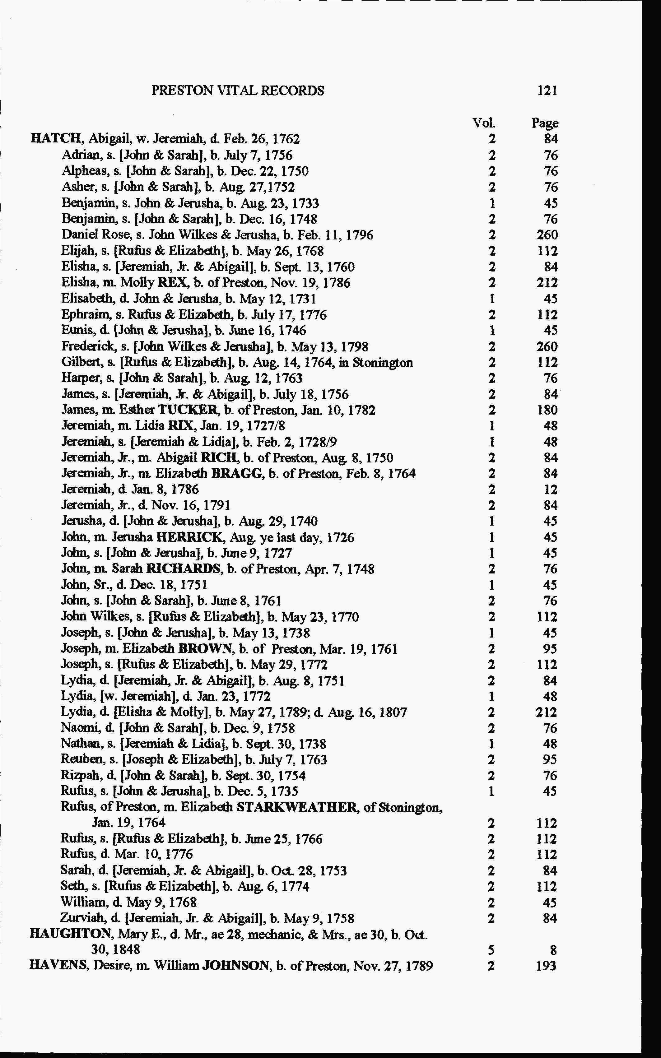 Preston Vital Records: