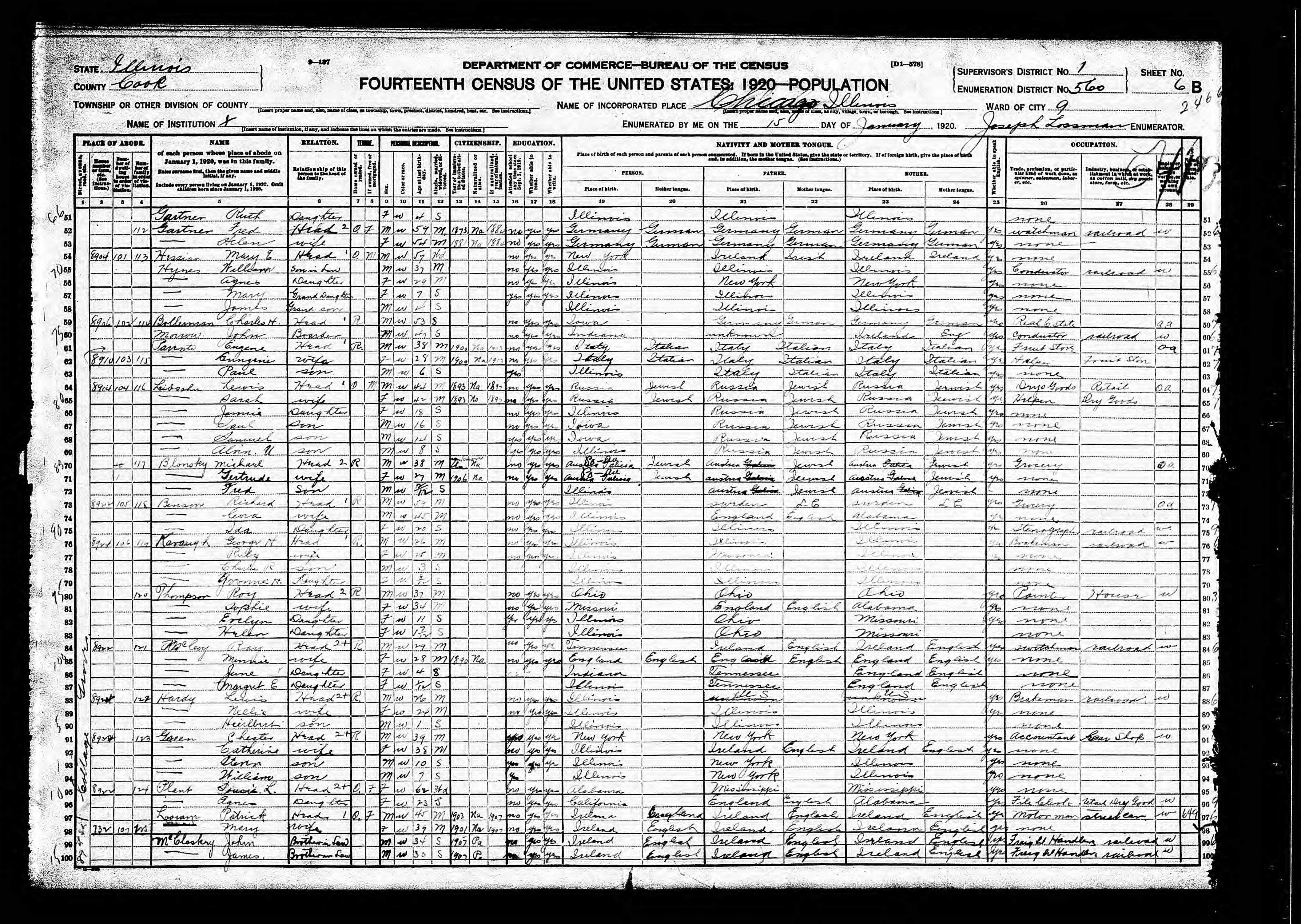 Home in 1920: Chicago Ward 9, Cook (Chicago), Illinois