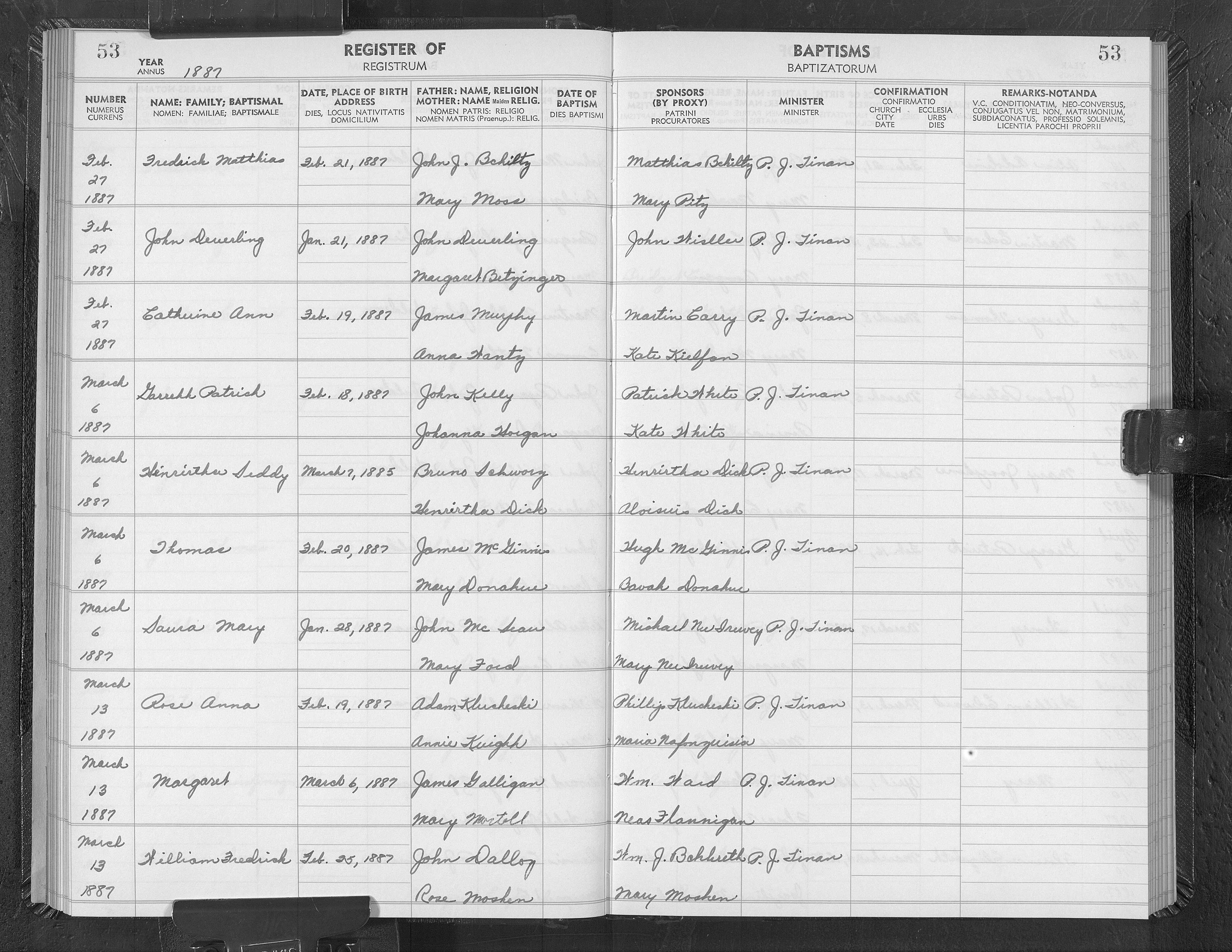 Holy Rosary Parish; sponsors Hugh McGinnis & Sarah Donahue