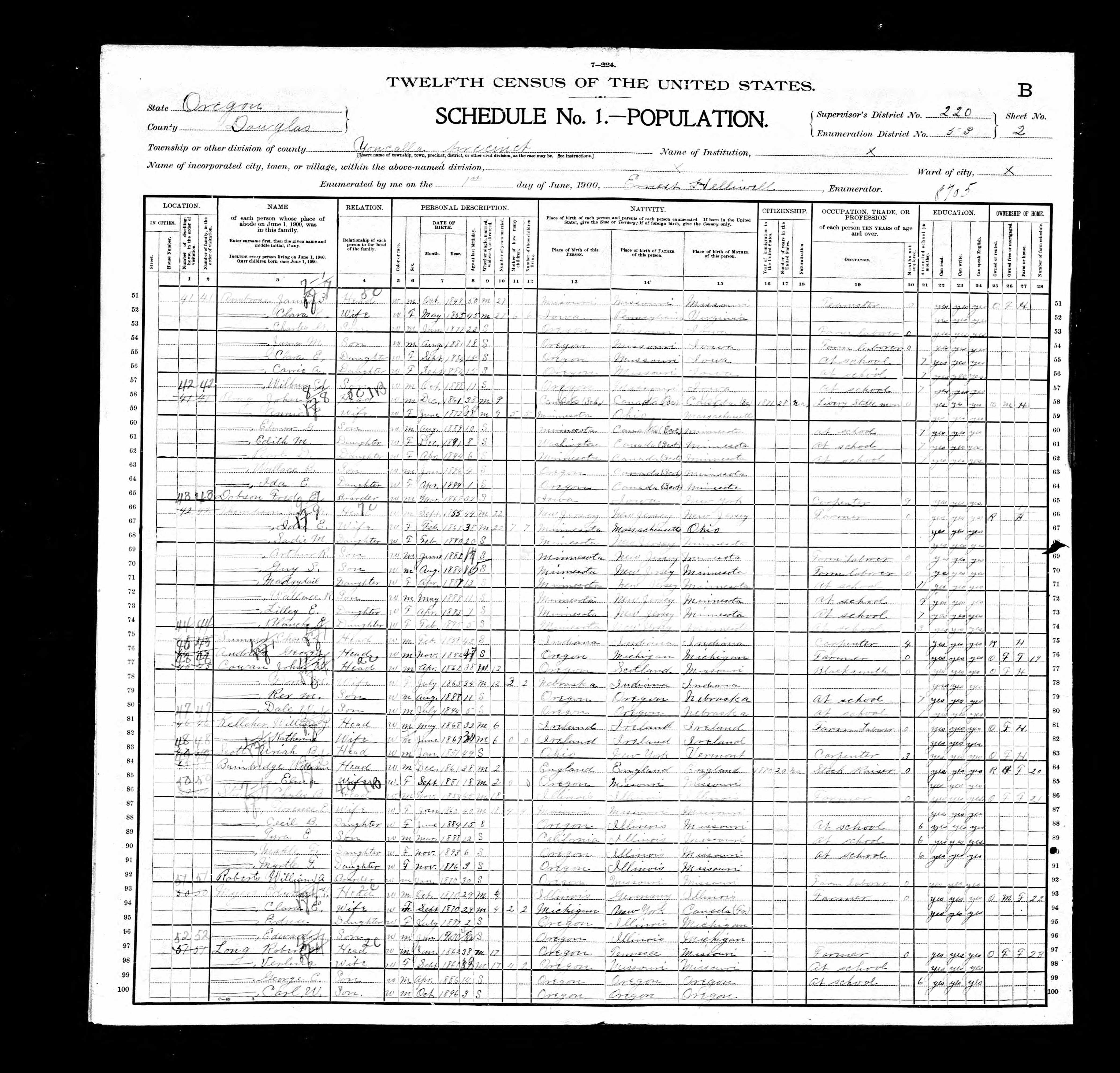 Elmer Guy Boag Sr. - 1900 United States Federal Census