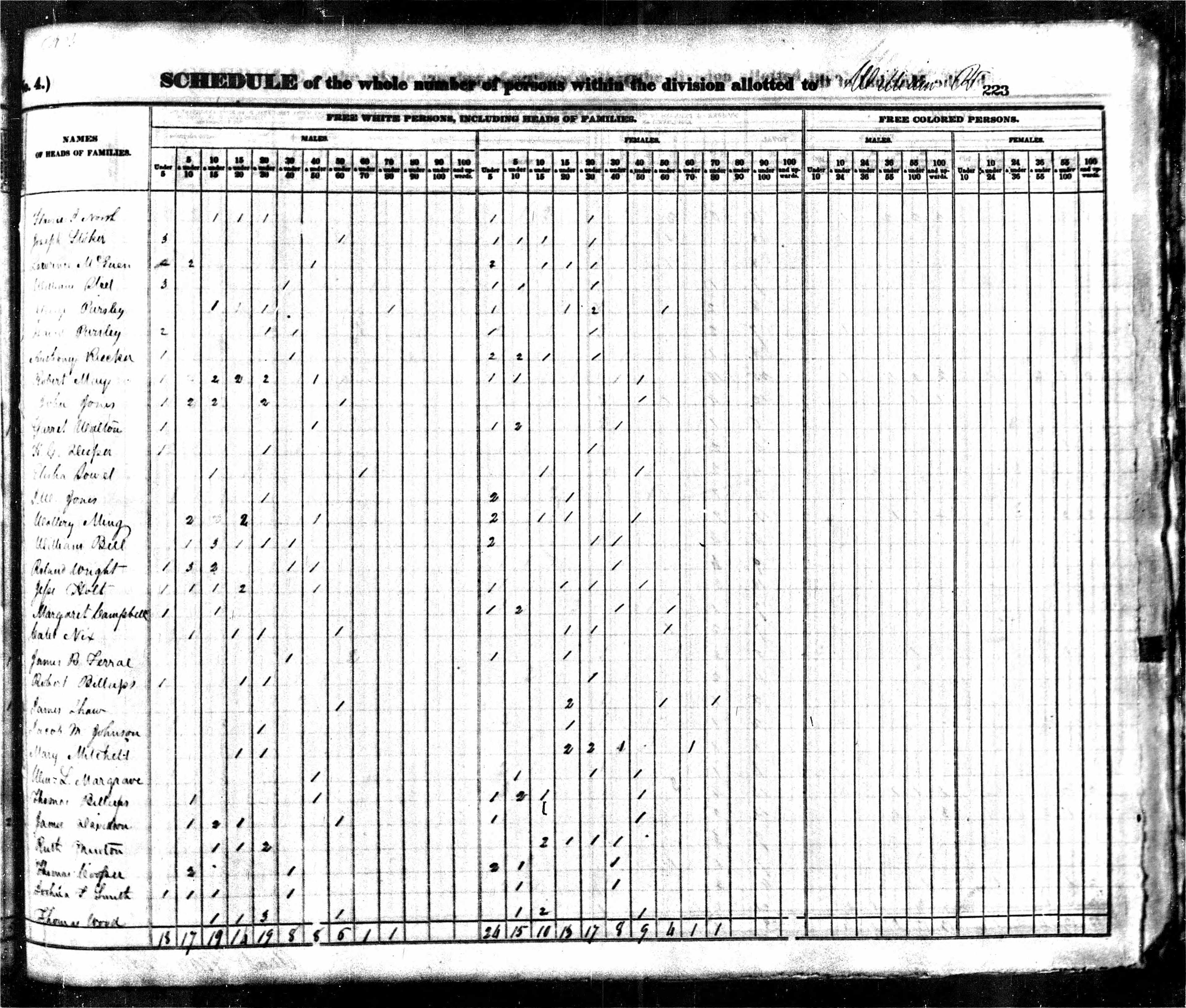 Total Free White Persons: 7