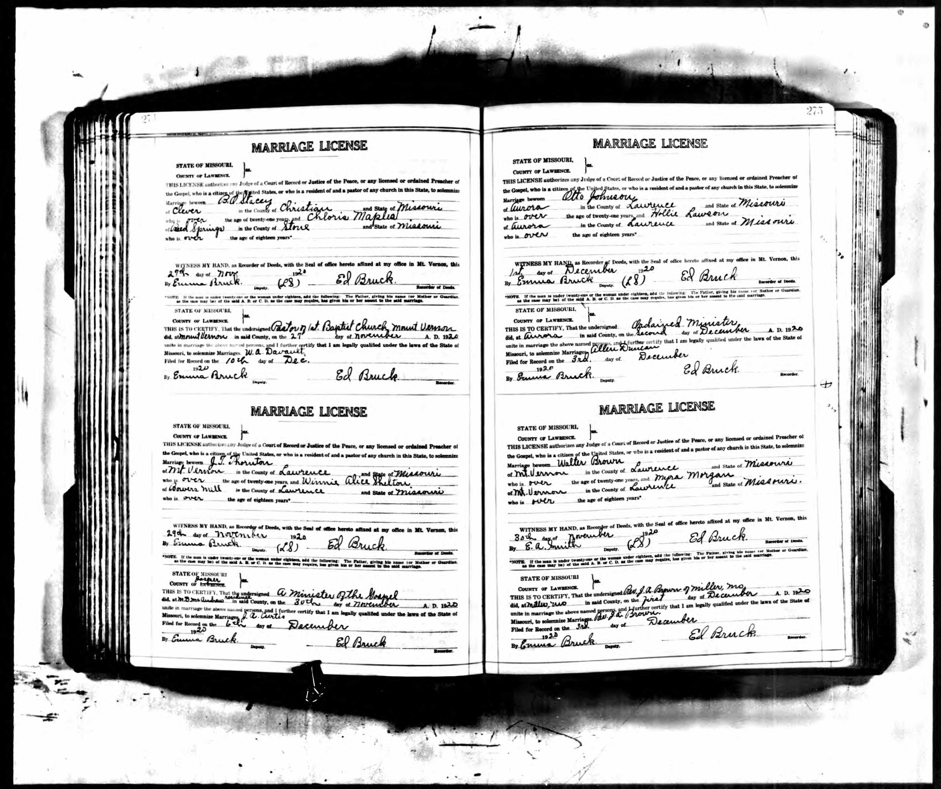 Winnie Shelton & John Thornton - Missouri Marriage Record