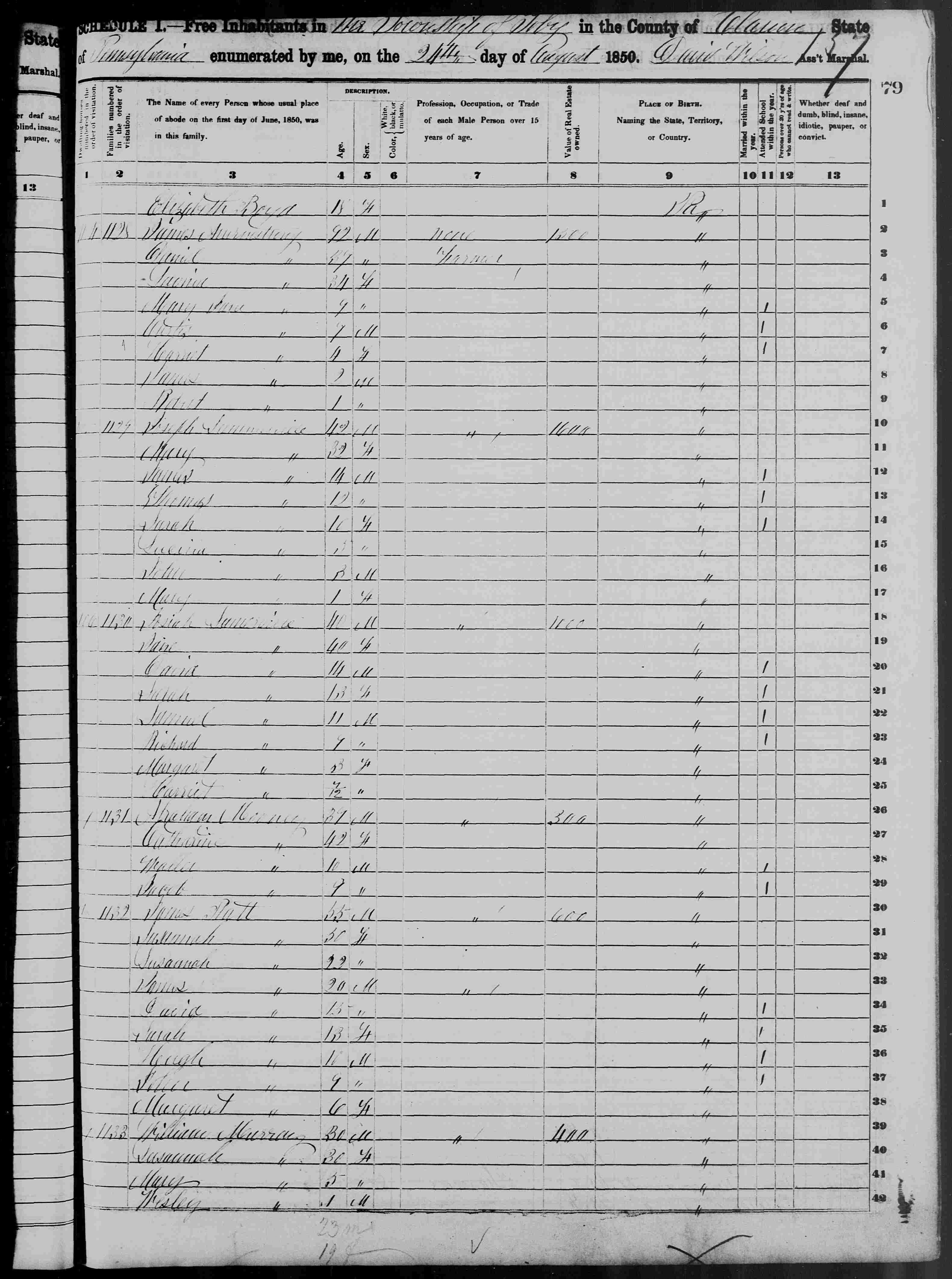 James Summerville, Joseph Summerville, & Mary Downs - 1850 United States Federal Census