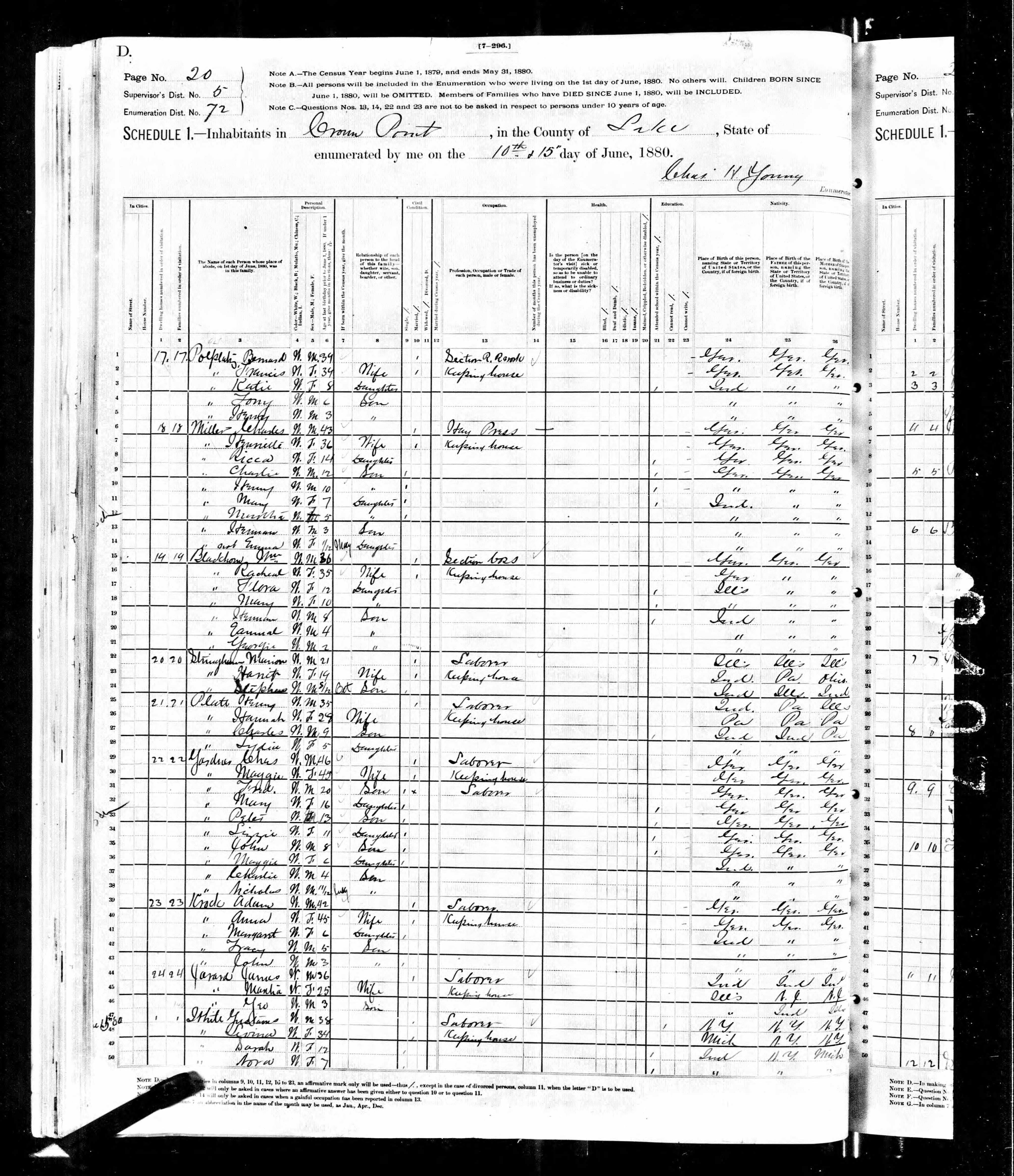Household Role Gender Age Birthplace