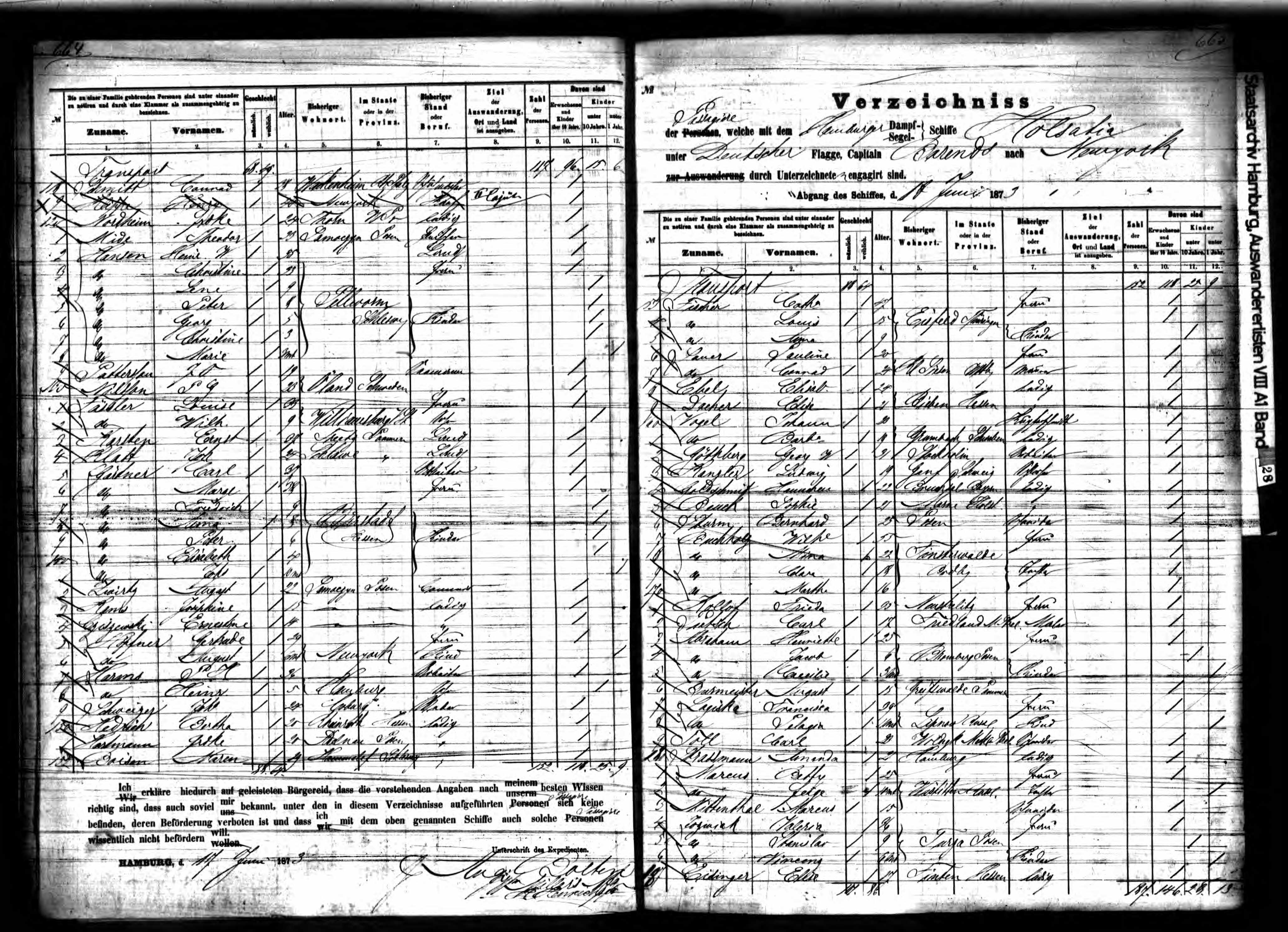 Gartner Family - Hamburger Passagierlisten, 1850-1934