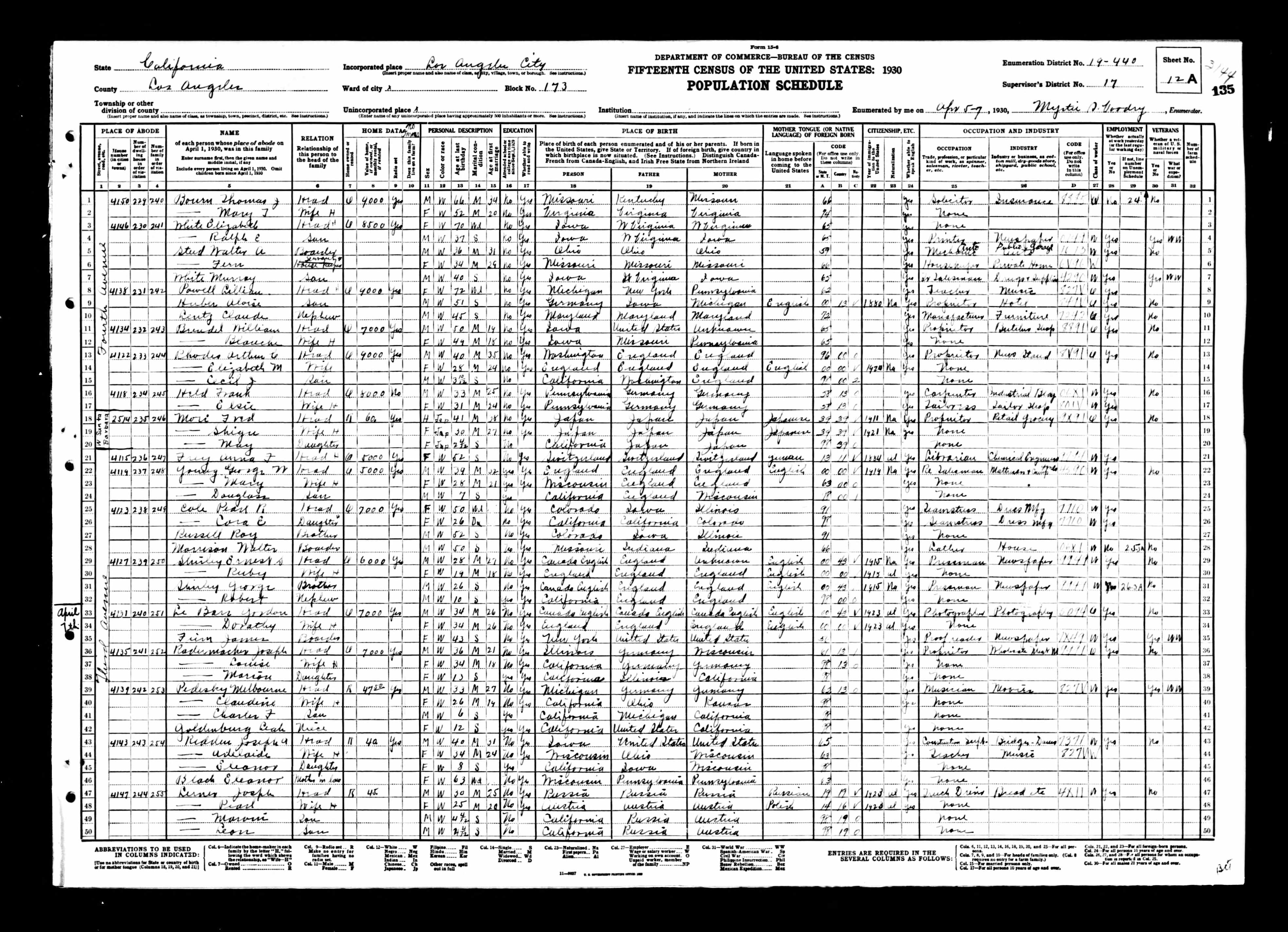 Thomas Jefferson Bourn - 1930 United States Federal Census