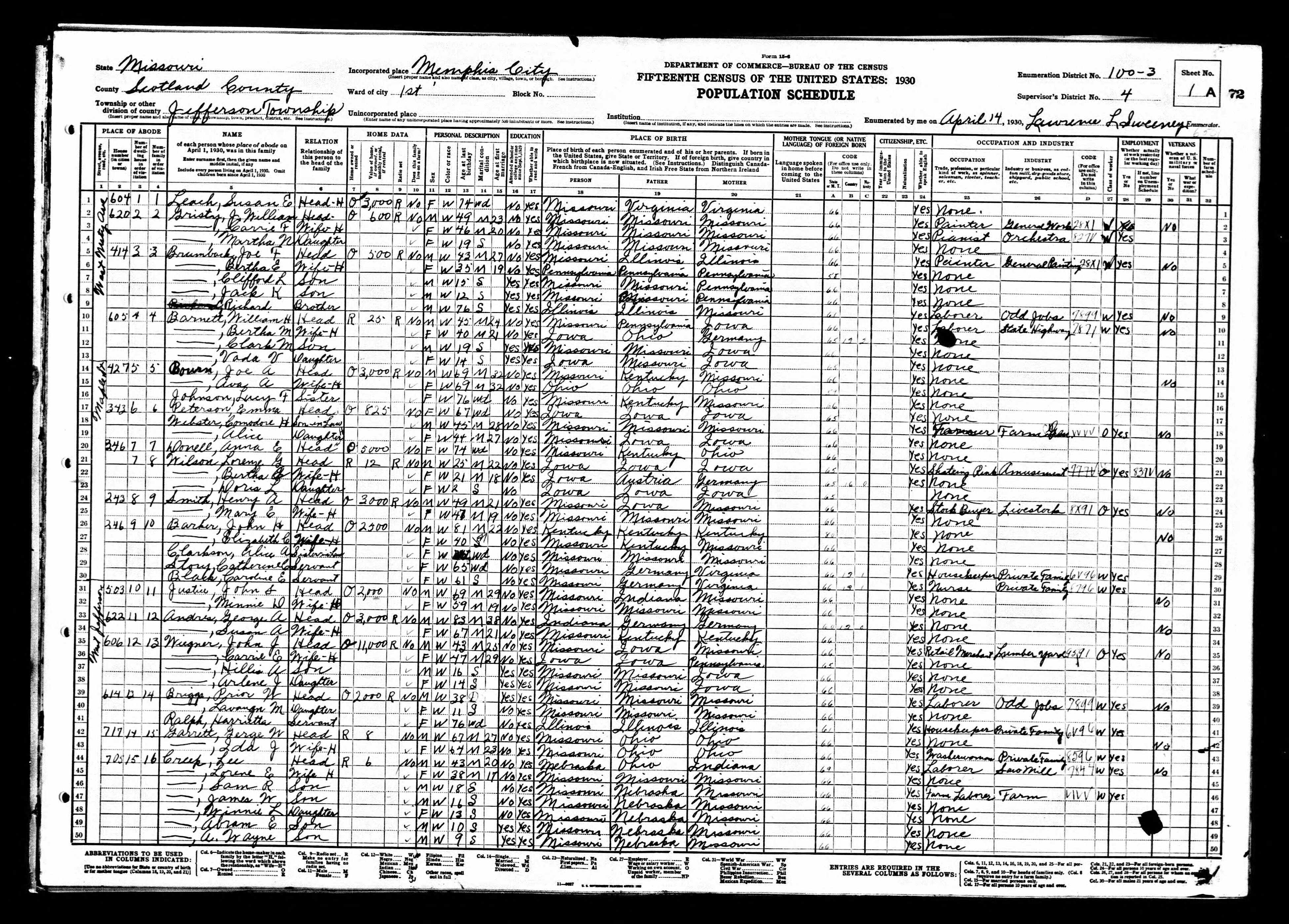 Joseph Anderson Bourn - 1930 United States Federal Census