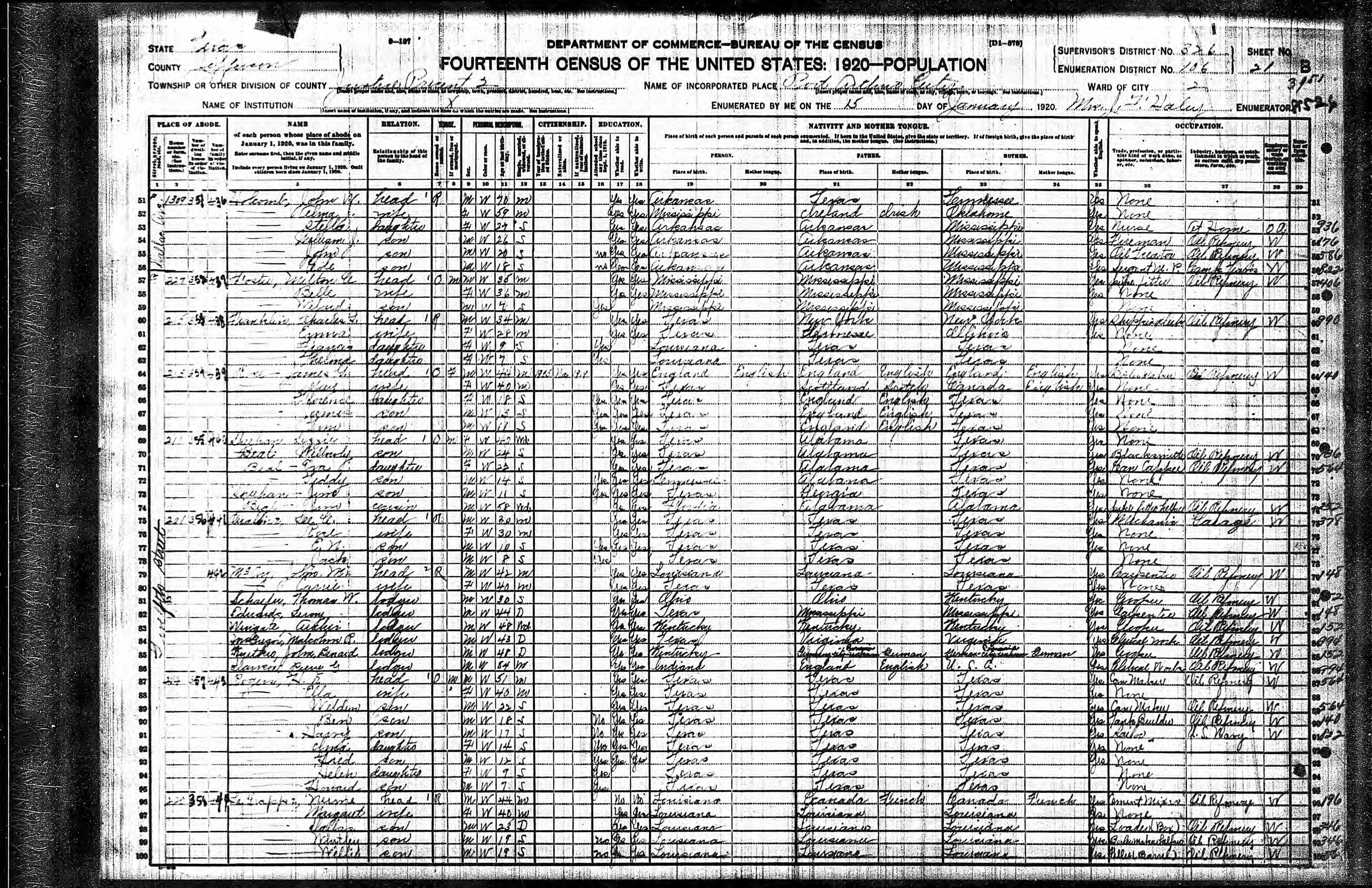 Home in 1920: Port Arthur Ward 2, Jefferson, Texas