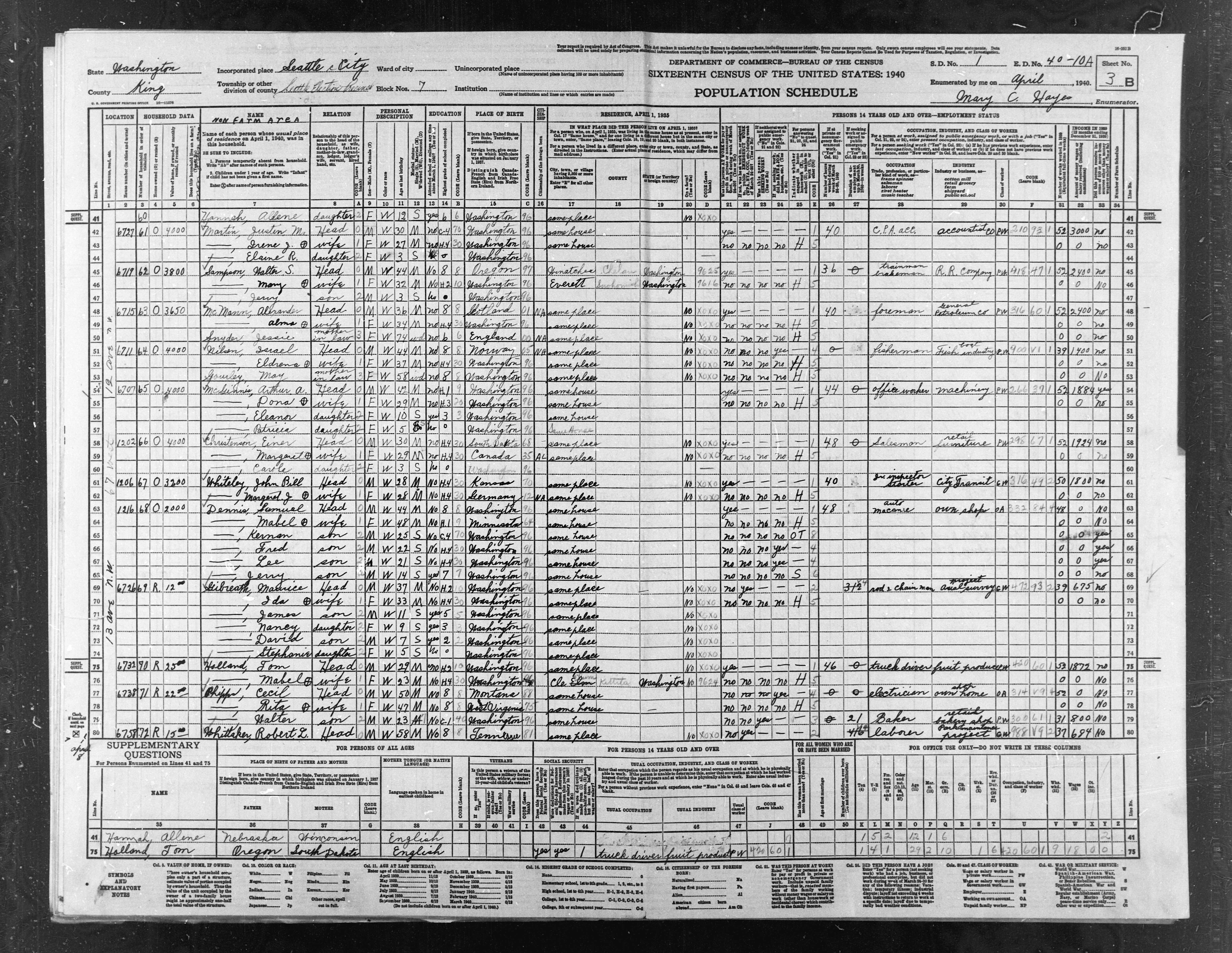Angus Arthur McGinnis - 1940 United States Federal Census