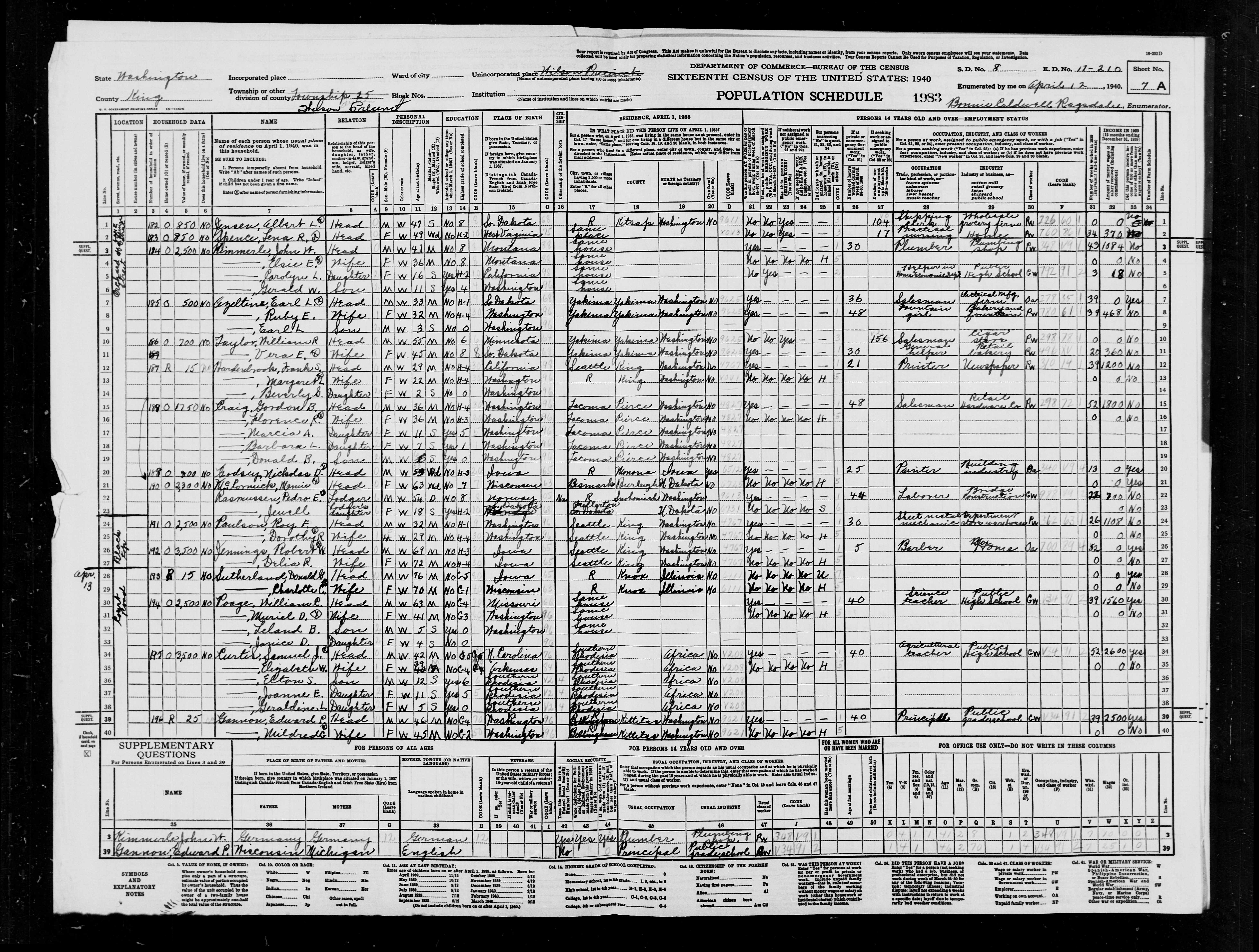 Gordon Bernard Craig - 1940 United States Federal Census