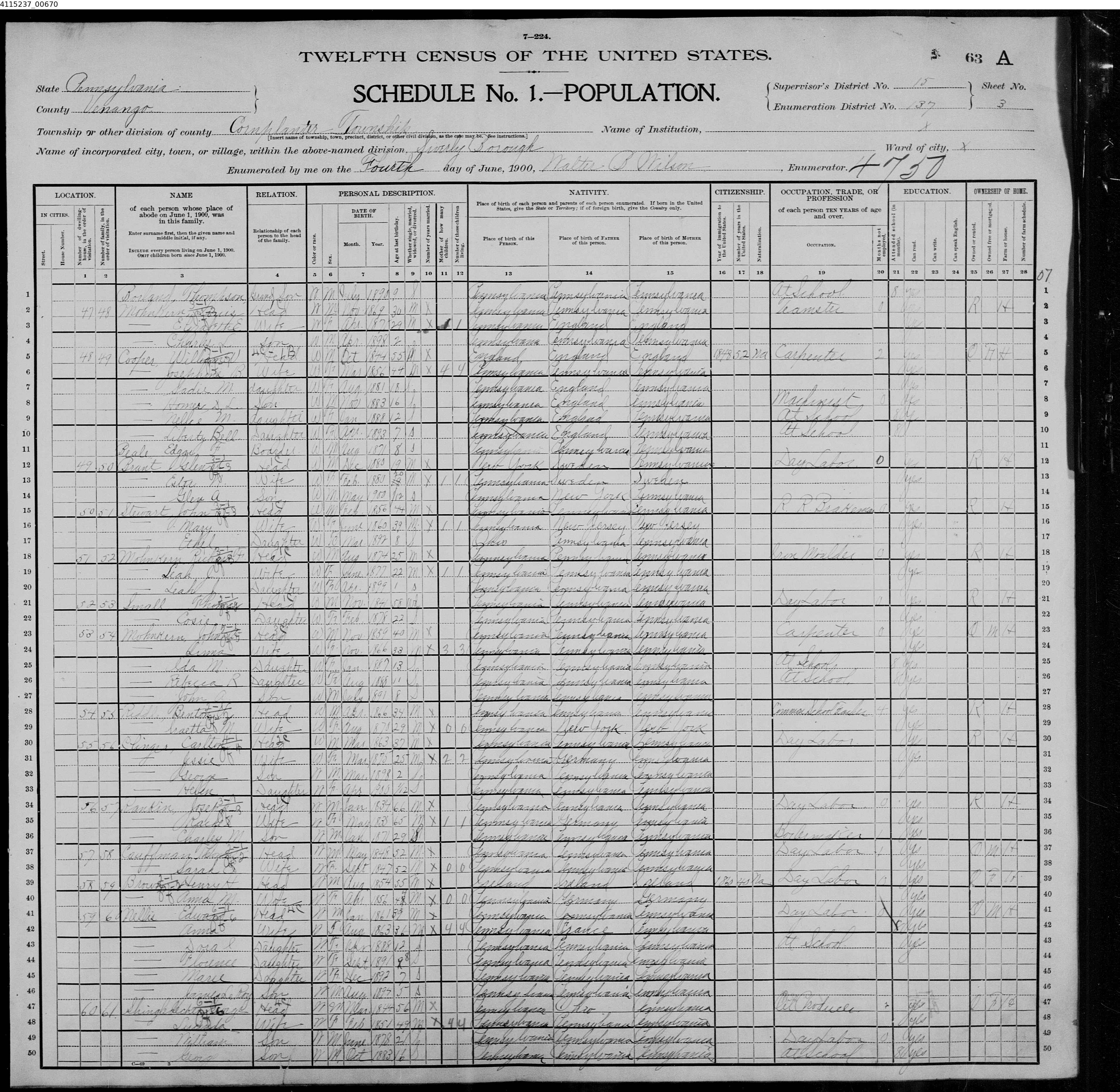 Carlton Curtis Clinger - 1900 United States Federal Census