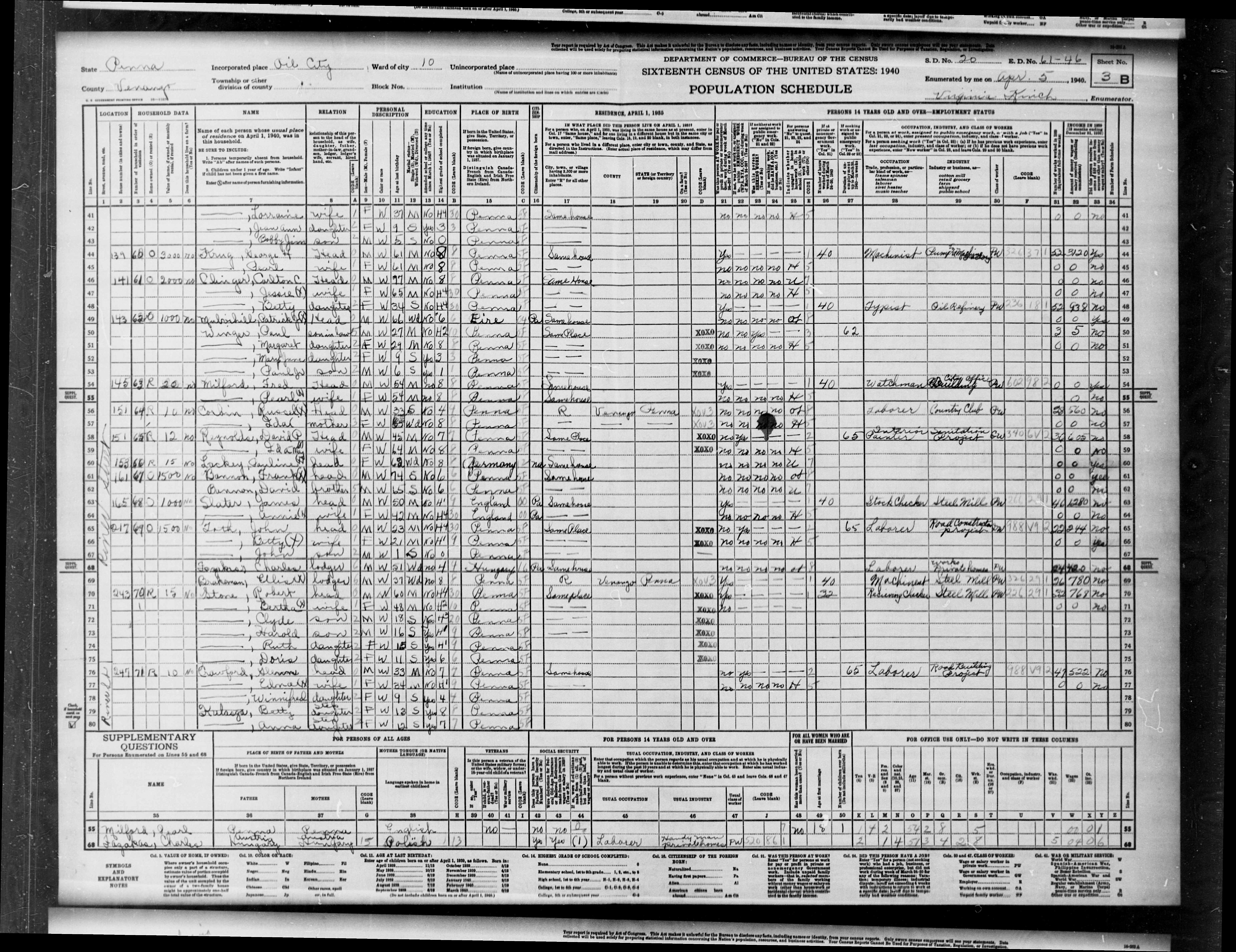 Event Place: Ward 10, Oil City, Oil City, Venango, Pennsylvania, United States