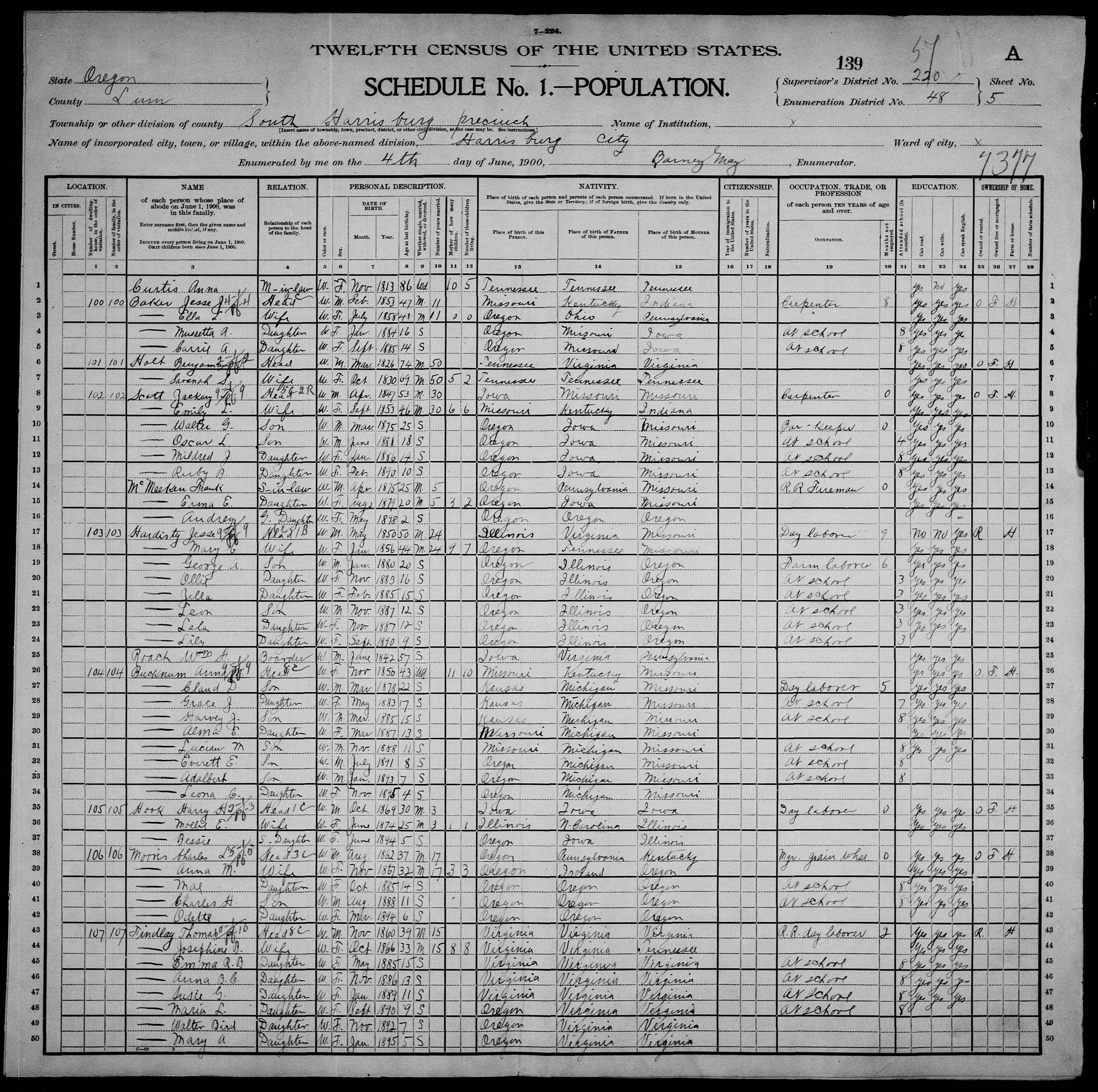 Zachariah Taylor Scott - 1900 United States Federal Census