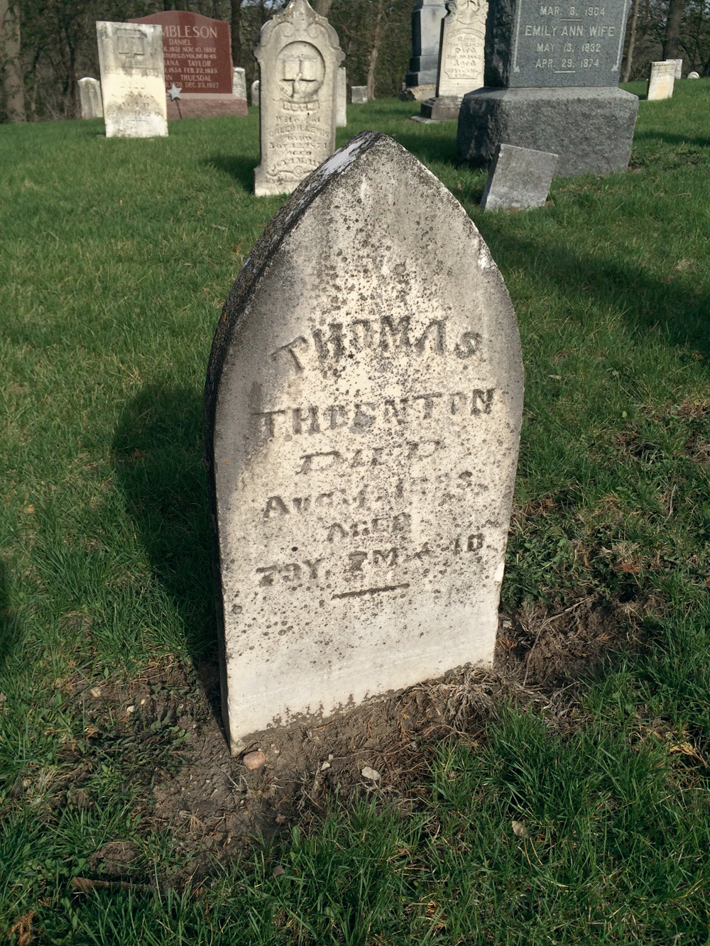 s/o Thomas & Abagail (Spencer) Thornton; h/o Eleanor (Brady); p/o Ira, Alexander, Joshua R., Reason, Ruth, Cyrus F., Mary Ann, Charles, Charity, Lucinda, Eli, Henry