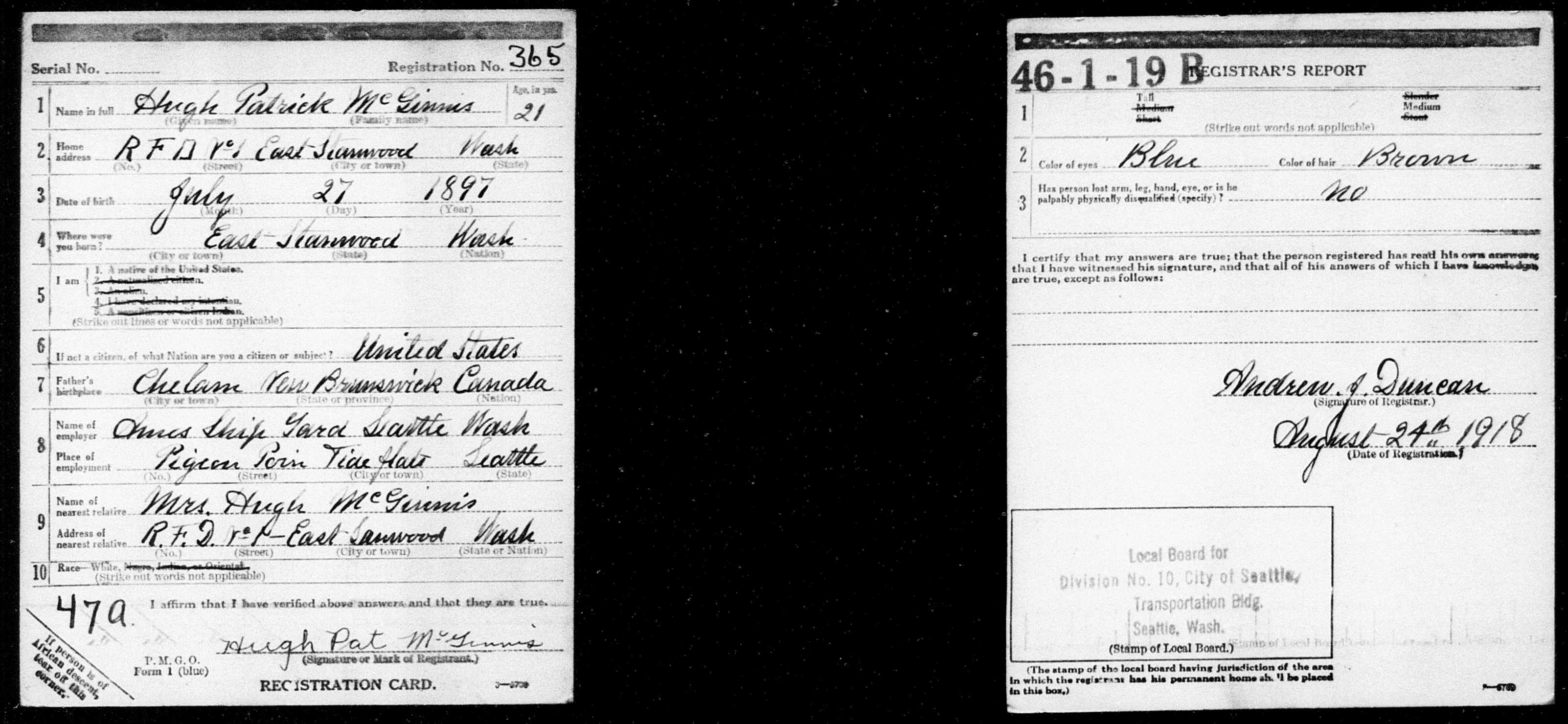 Hugh Patrick McGinnis Jr. - World War I Draft Registration