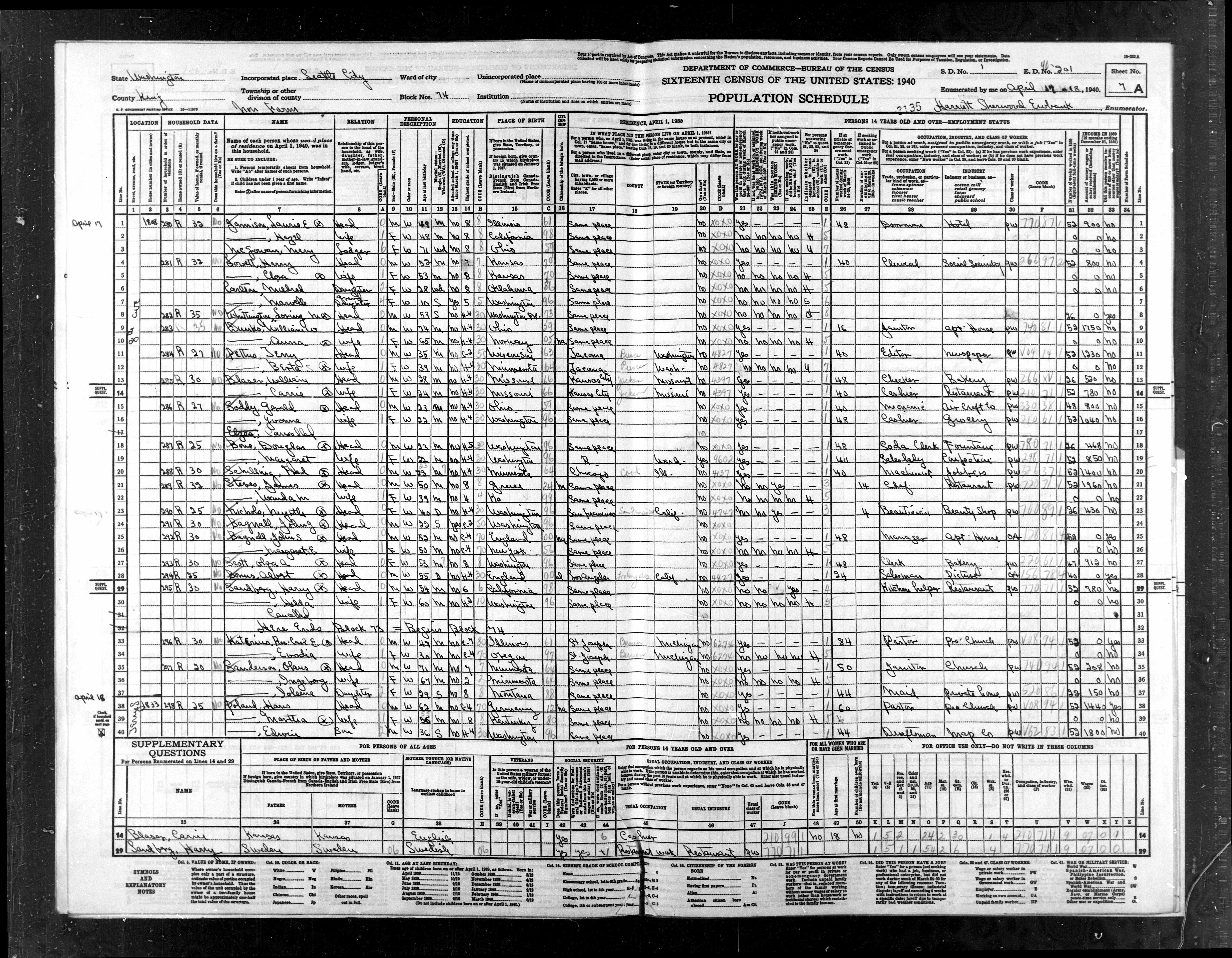 Event Place: Tract L-3, Seattle, Seattle Election Precinct, King, Washington, United States