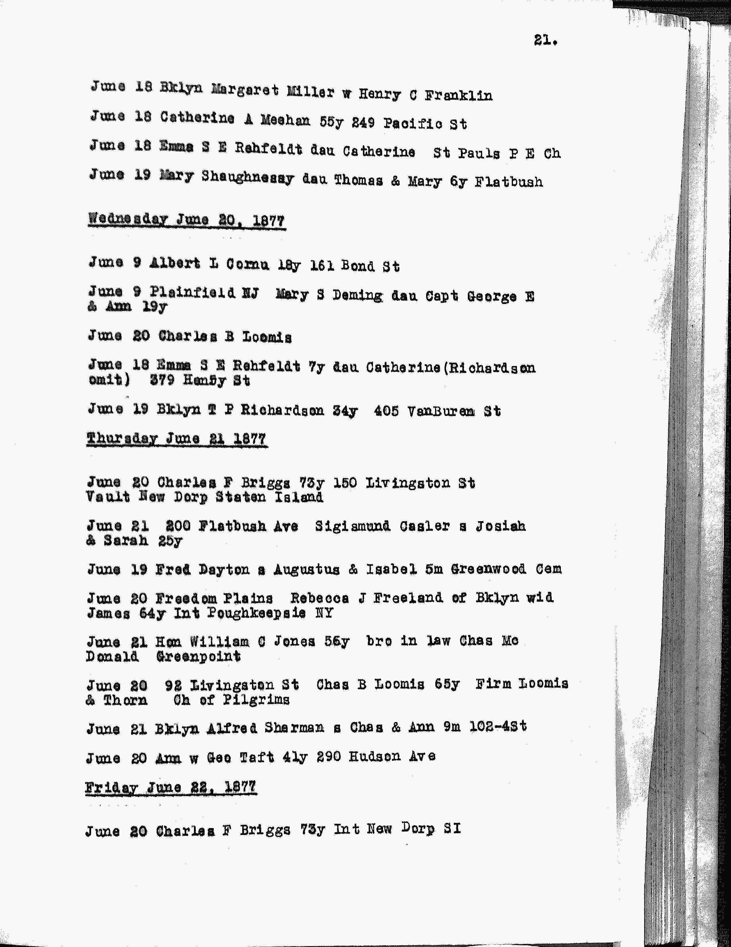 19 Jun 1877 - Brooklyn Margaret Miller wife of Henry C Franklin