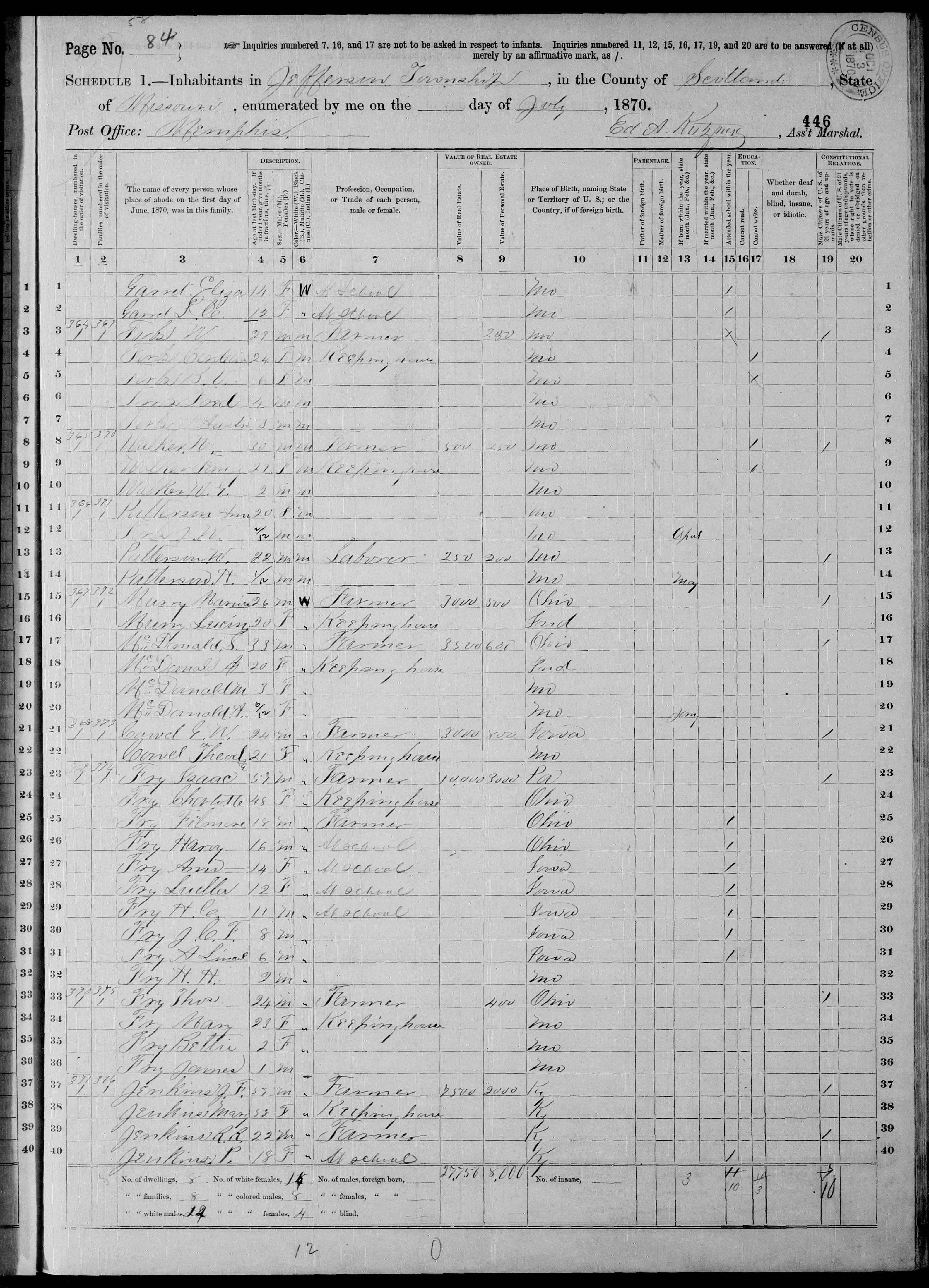 Jeremiah Franklin Jenkins - 1870 United States Federal Census