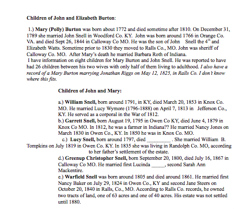 "John Burton, son of May Burton Sr., was born in the mid 1750's in Orange County Virginia and died prior to 1733 in Oldham County, Kentucky. He married Elizabeth Hudson, daughter of Rush Hudson from Orange County Virginia around 1771...."