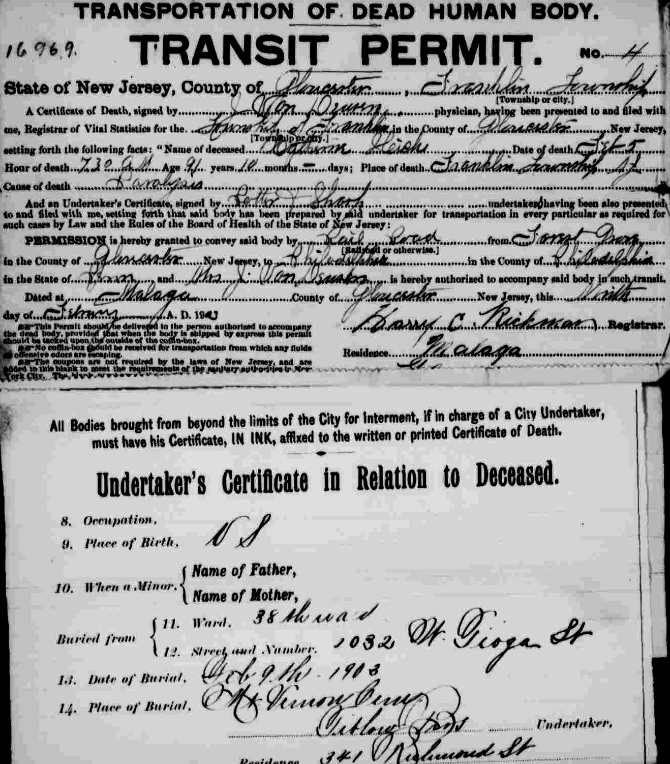 Died Franklin Township, Gloucester, NJ