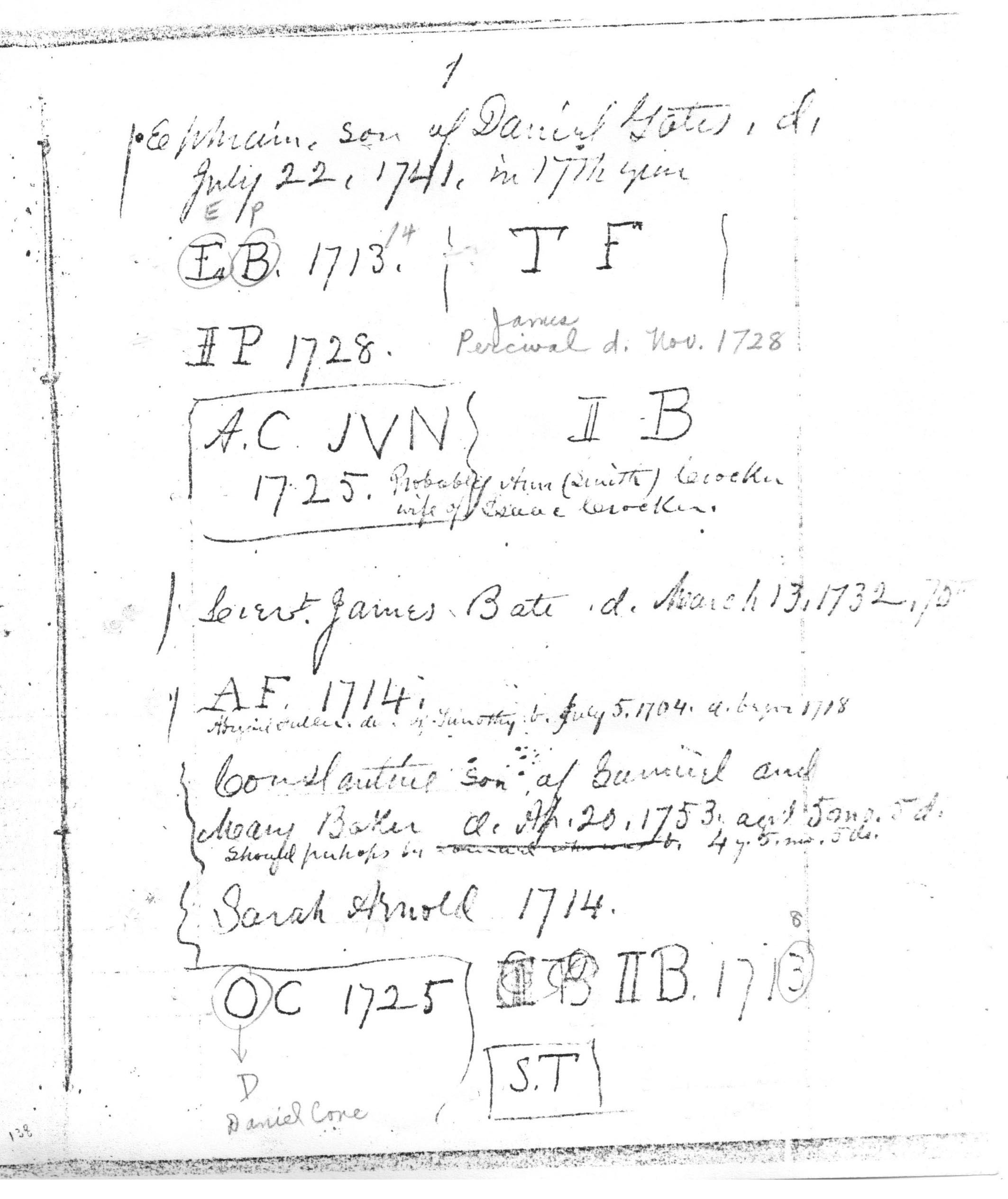 Son of William and Mercy (Sprague) Tubbs, husband of Mary (Willey) Tubbs, father of Bethia, William, Samuel, Mercy "Mary", Joanna, Isaac, Sarah, Dorcas, John, and Joseph Tubbs.-------------------------The following is an explanation of the notes from the books kept by Dr. David Patterson of New Jersey. In October of 1860 he visited the Old Cove Burying Ground and copied all gravestone and fieldstone inscriptions. This was a very valuable contribution on his part as his notes has helped to solve "missing persons" who apparently had no stones to mark their graves. On one of the notes, at the bottom, shows the initials "S T" with no date. It is doubtlessly that of Samuel Tubbs who died in Hadlyme during the winter of 1695-6. It is located on the northwest side of the burying place which is the oldest section. I have searched for this fieldstone but could never find it. It probably became buried under through the years or removed. Written by Jonathan Twiss. -------------------------Sadly our history is not always as pleasant as we hope it would be but still it deserves to be told.