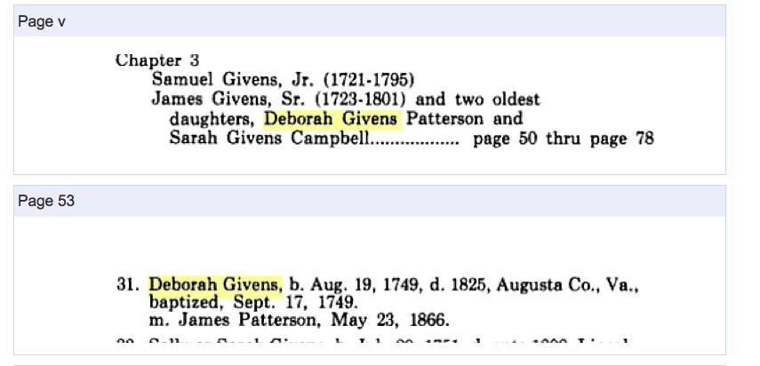 Deborah Givens - Samuel Givens Family and Kin