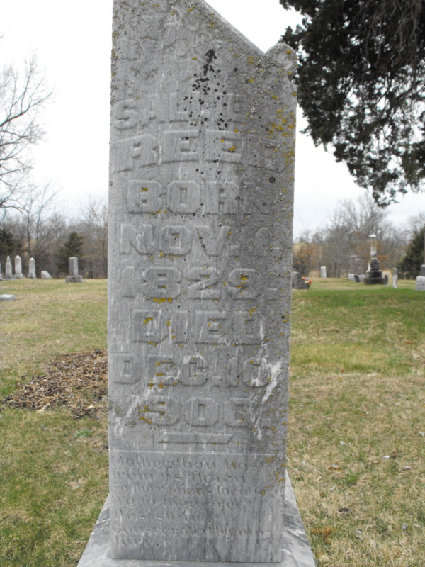 Obituary - Died, December the 10th, 1900. Sallie A. Reed, aged 71 years, 1 month, and 9 days. Deceased was born in Fayette county, Ky., November 1, 1829. She was one of the early settlers, having come to Missouri some fifty years ago. She was loved by all who knew her as she was always ready to help and sympathize with those around her. In her death her children lose a kind and loving parent, but their loss is her gain, as she has been a constant sufferer for several years. Bearing her cross with true Christian fortitude, submitting always the will of her heavenly master. Funeral services were conducted by Rev. Wallace, after which the body was laid to rest in the Richland cemetery.