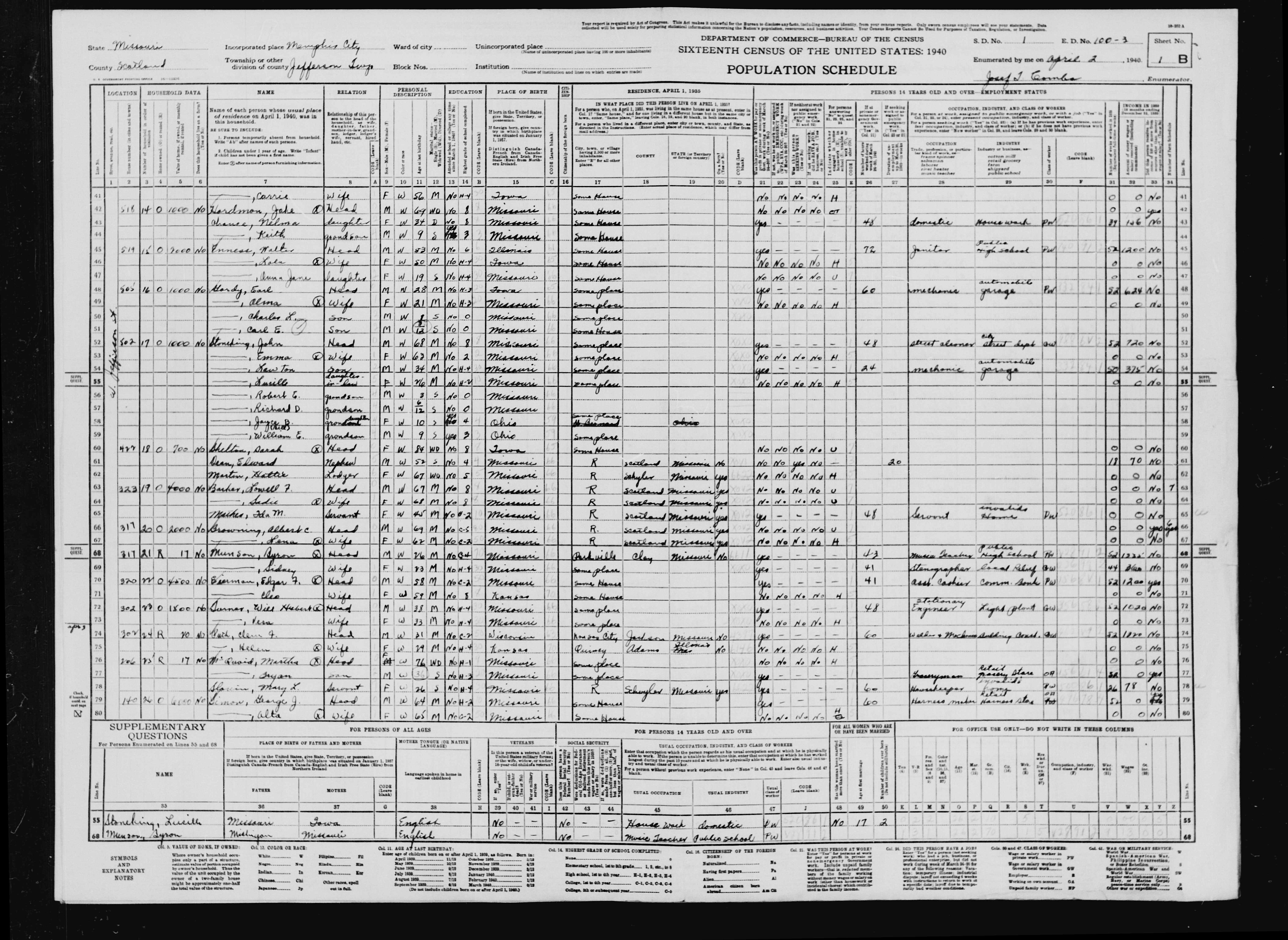 George Jacob Simon - 1940 United States Federal Census