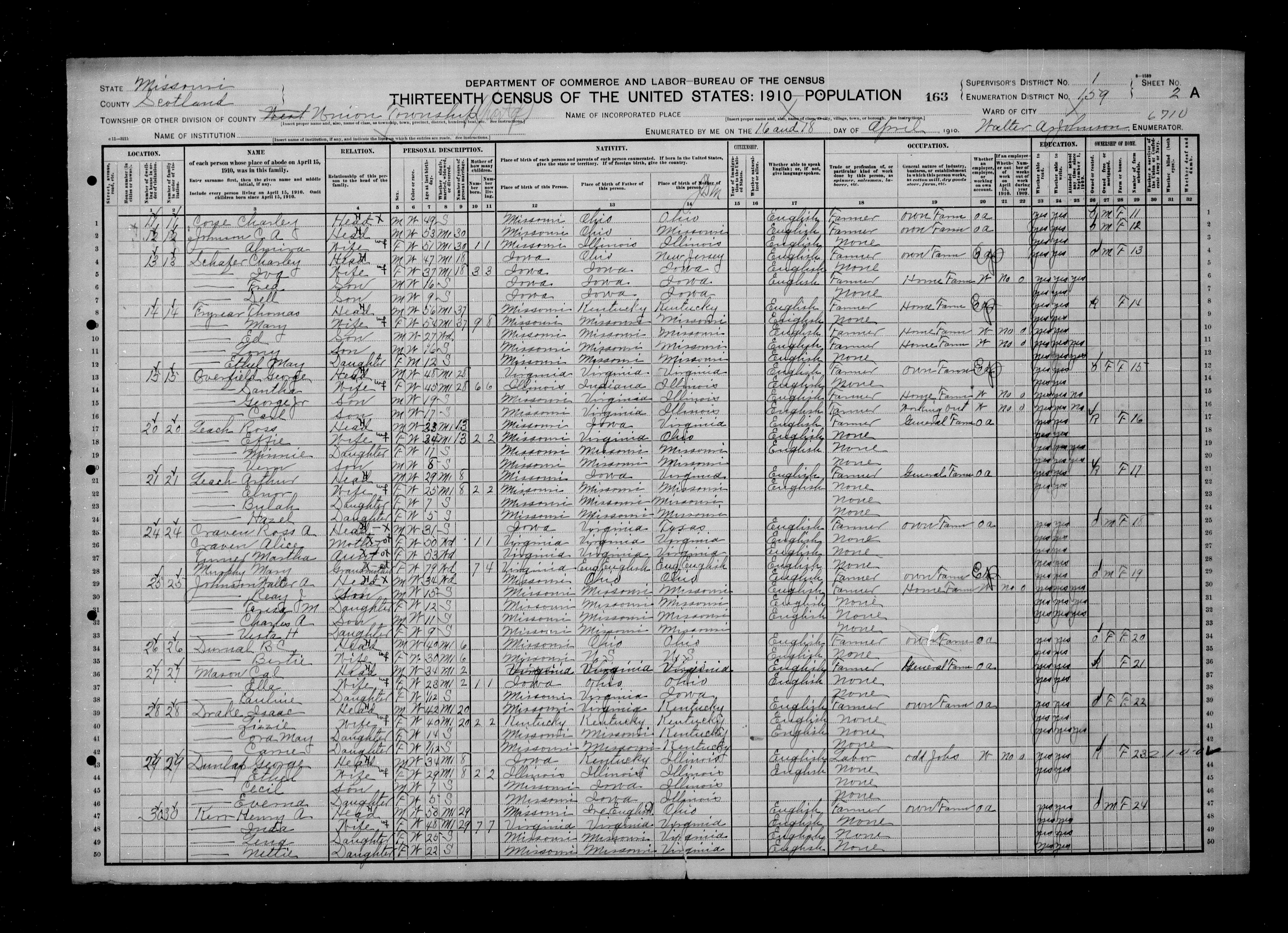 Charles Albert Johnson - 1910 United States Federal Census