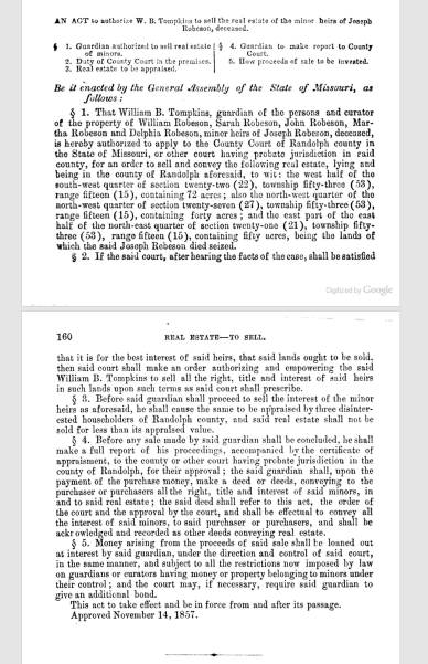 William B Tompkins - Laws of the State of Missouri Passed by the Adjourned Section
