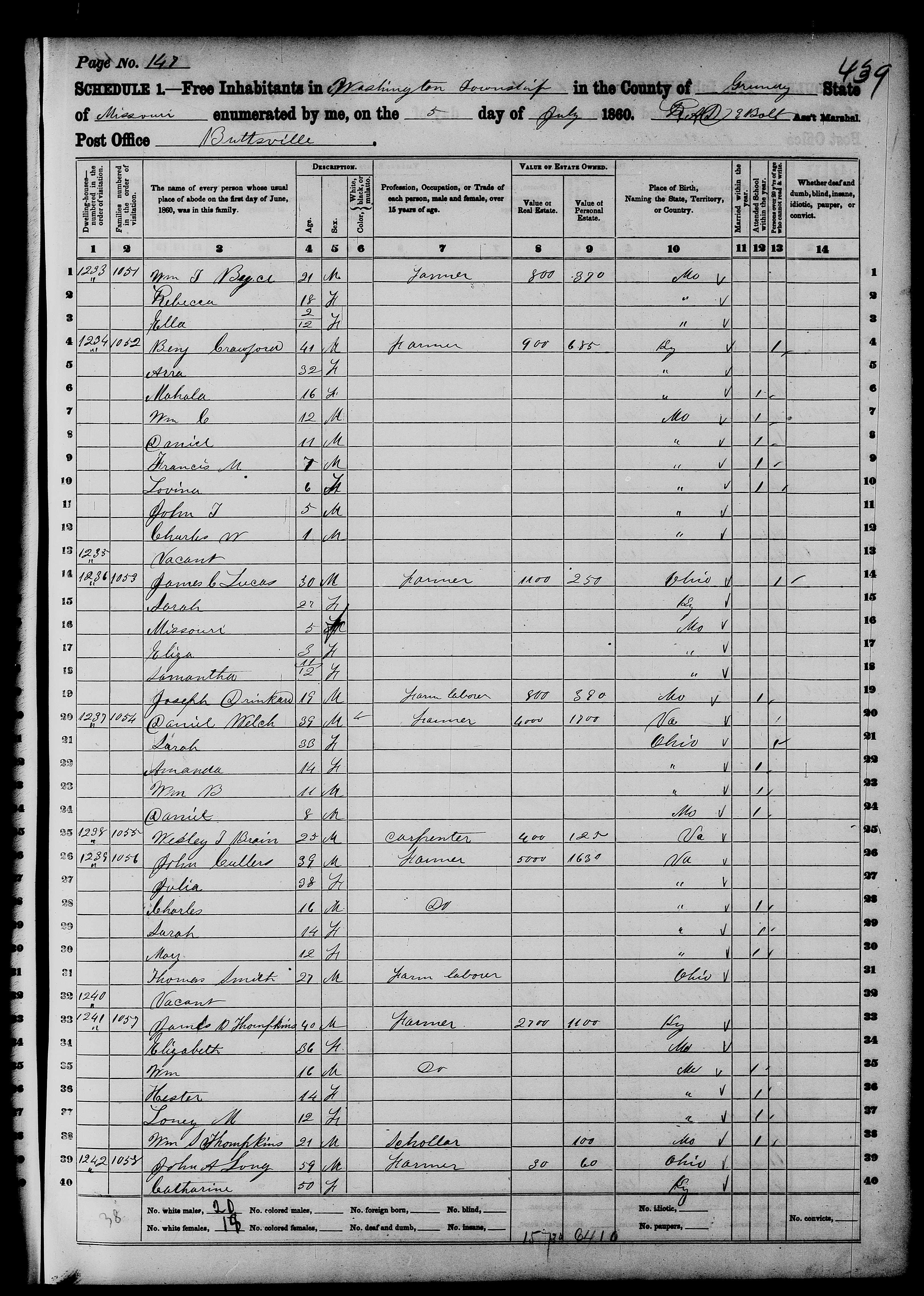 James B Tompkins & William S Tompkins - 1860 United States Federal Census