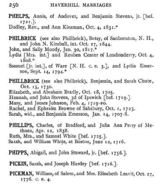 Mary Philbrick - Vital Records of Haverhill